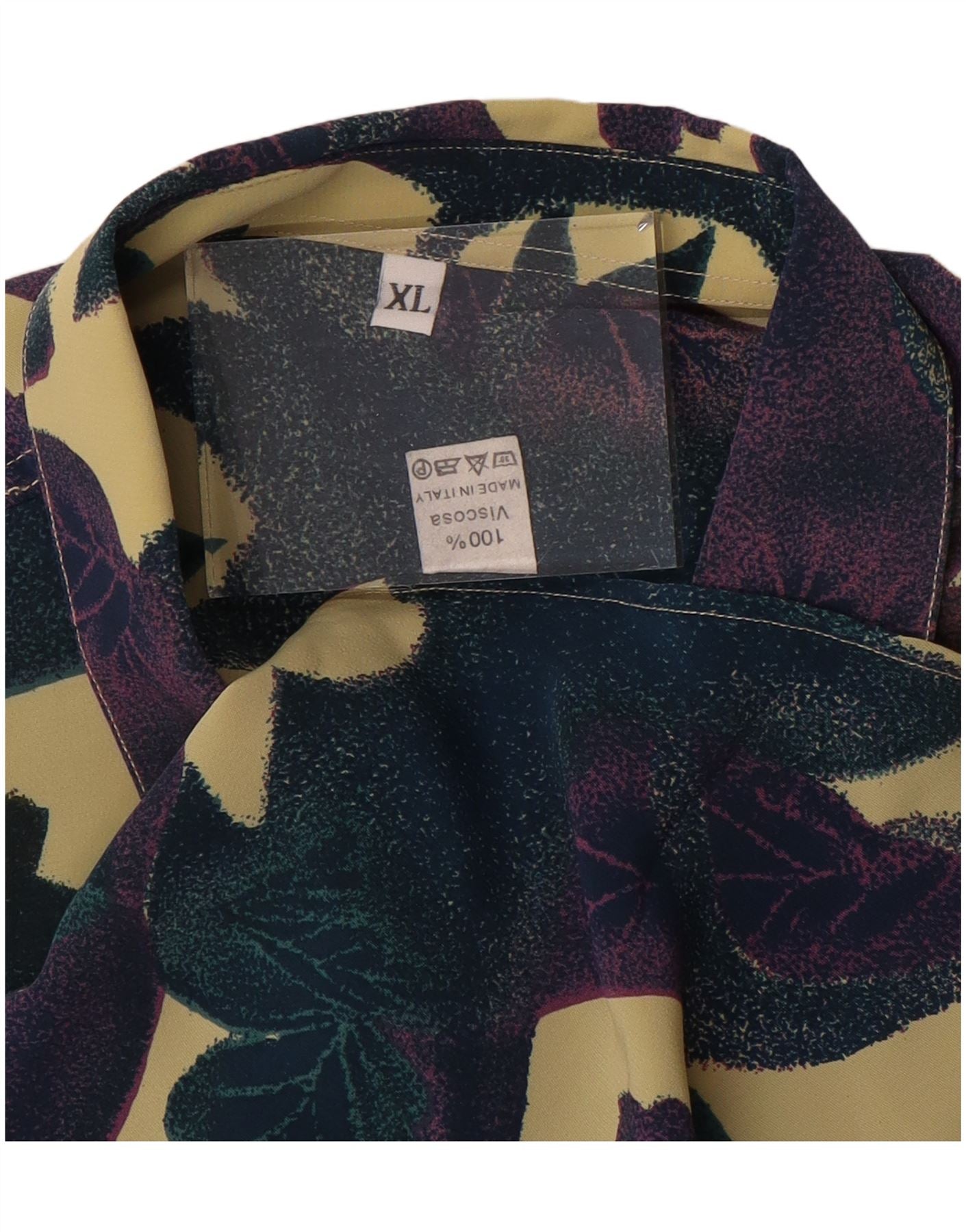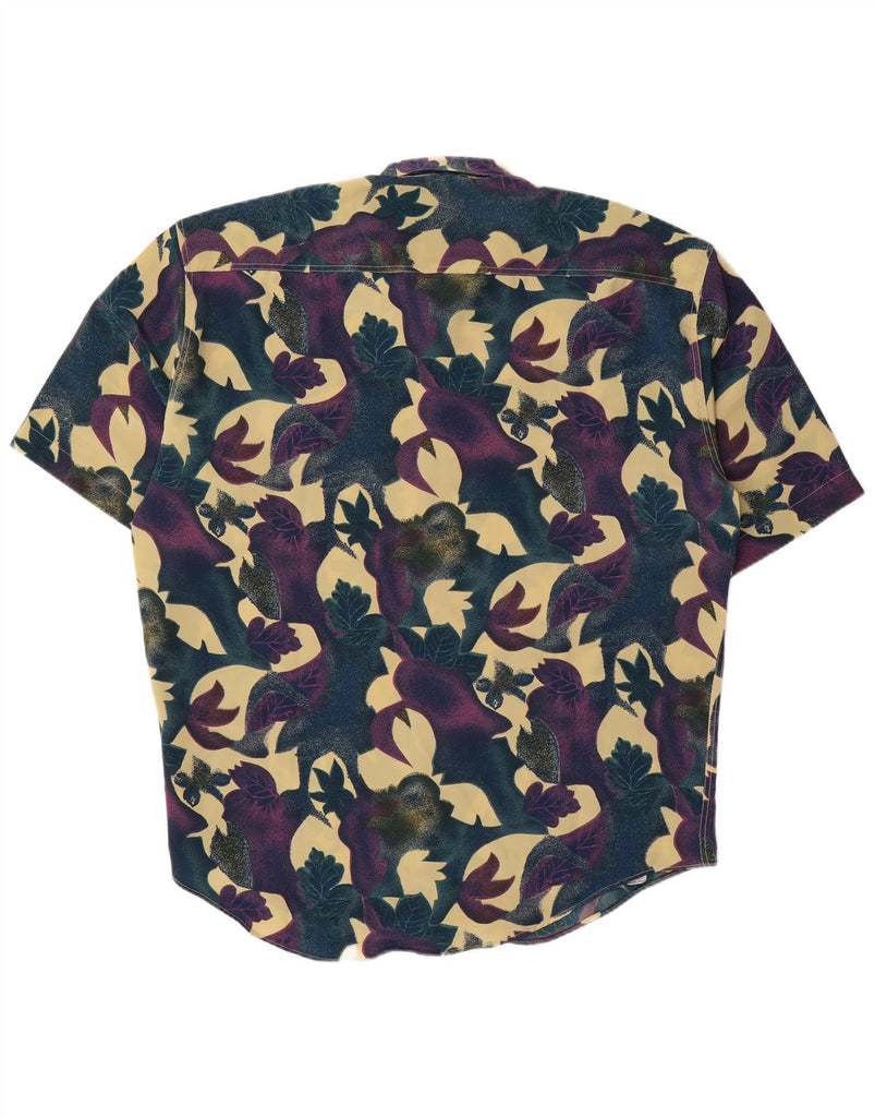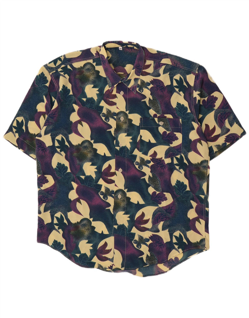 Camisa masculina VINTAGE manga curta XL azul marinho floral viscose