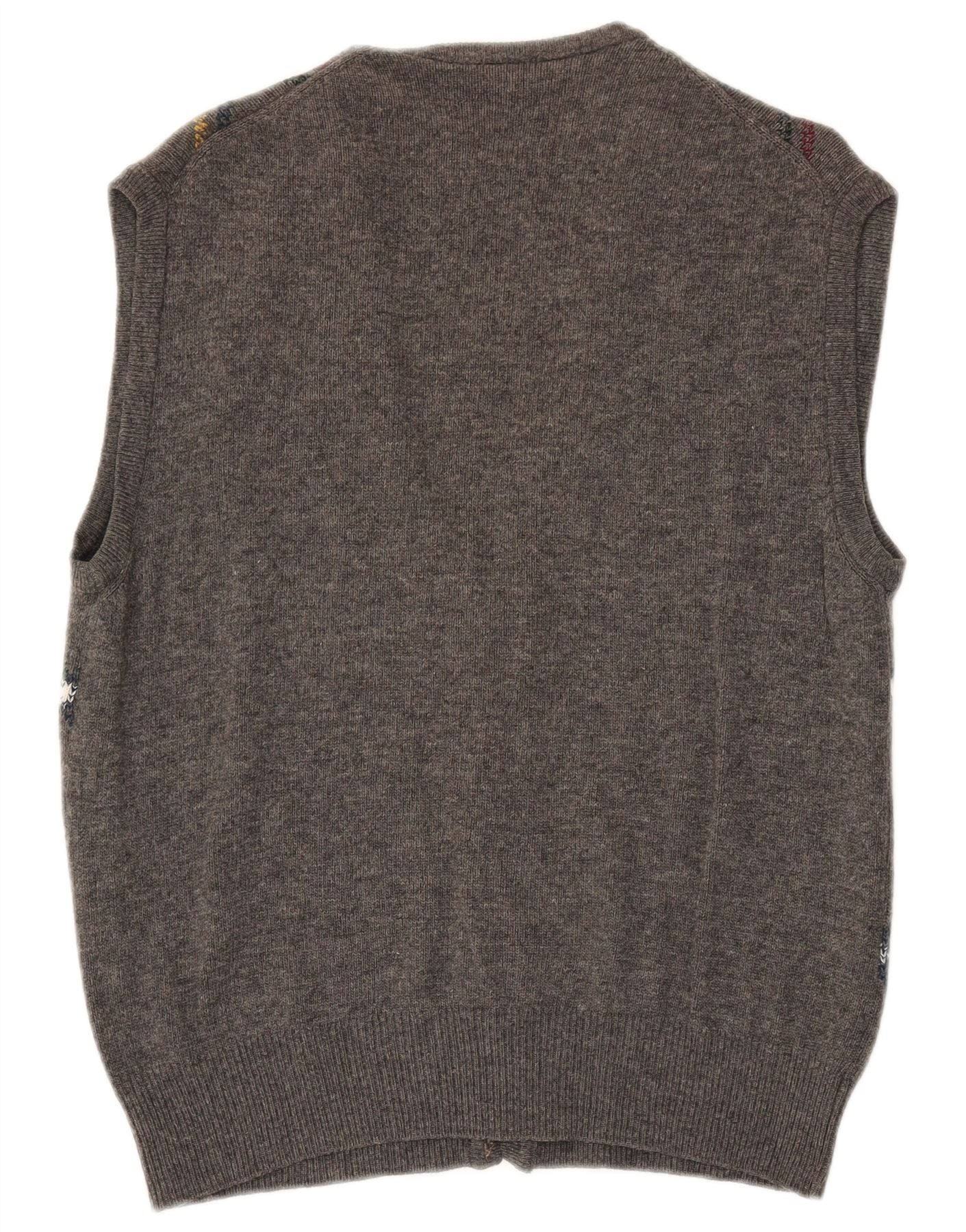 Suéter cardigã masculino sem mangas VINTAGE grande cinza Argyle/Diamante