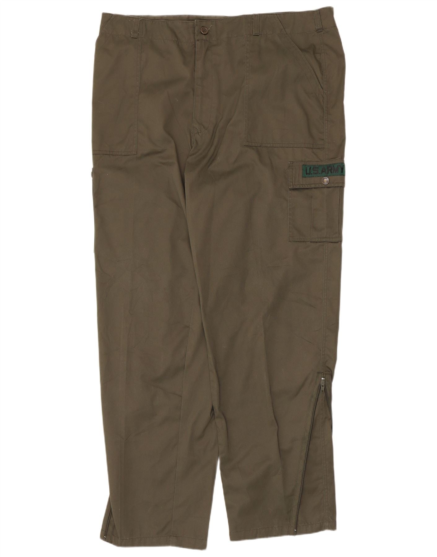 - Descrição da IA: Estas calças cargo masculinas Hunting P.O.L By Packy são feitas de uma mistura durável de poliéster cáqui e algodão. Eles apresentam um ajuste regular com um fecho de correr seguro. O armazenamento prático é fornecido por vários bolsos, incluindo opções com zíper para segurança. Os zíperes no tornozelo permitem um estilo ajustável. Um logotipo distinto do US ARMY acentua um bolso cargo, completando o robusto estilo militar.