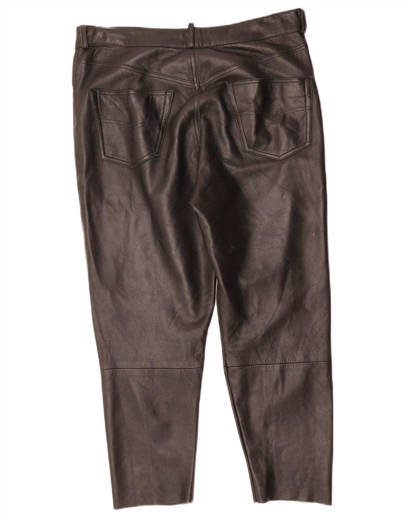 Calça cortada masculina VINTAGE de couro reto IT 48 médio W34 L25 preta