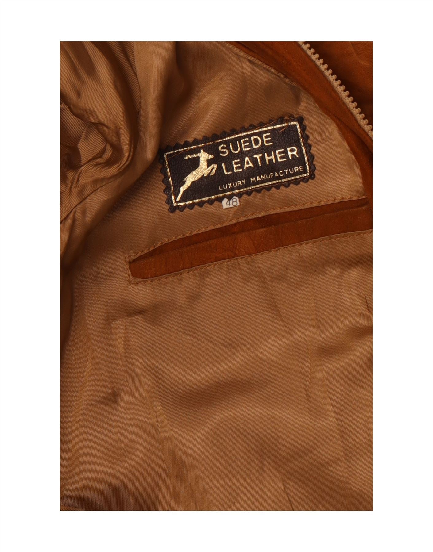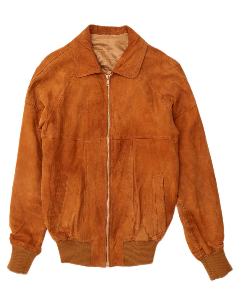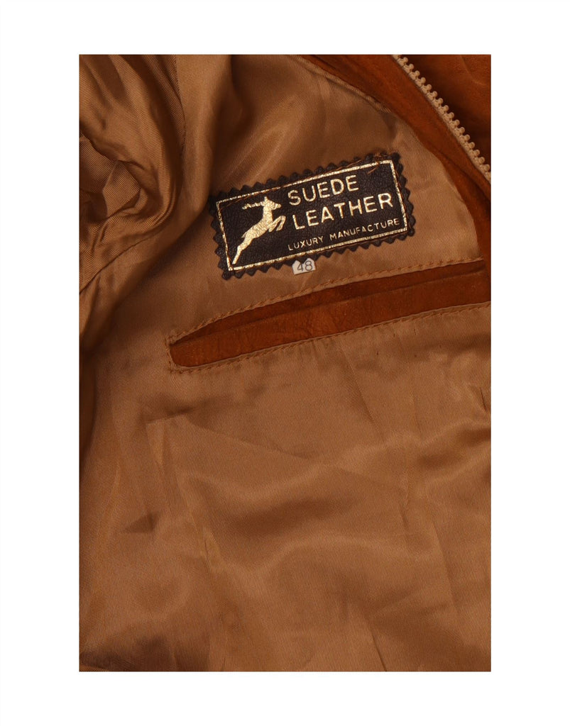 VINTAGE Mens Suede Bomber Jacket IT 48 Medium Brown Leather