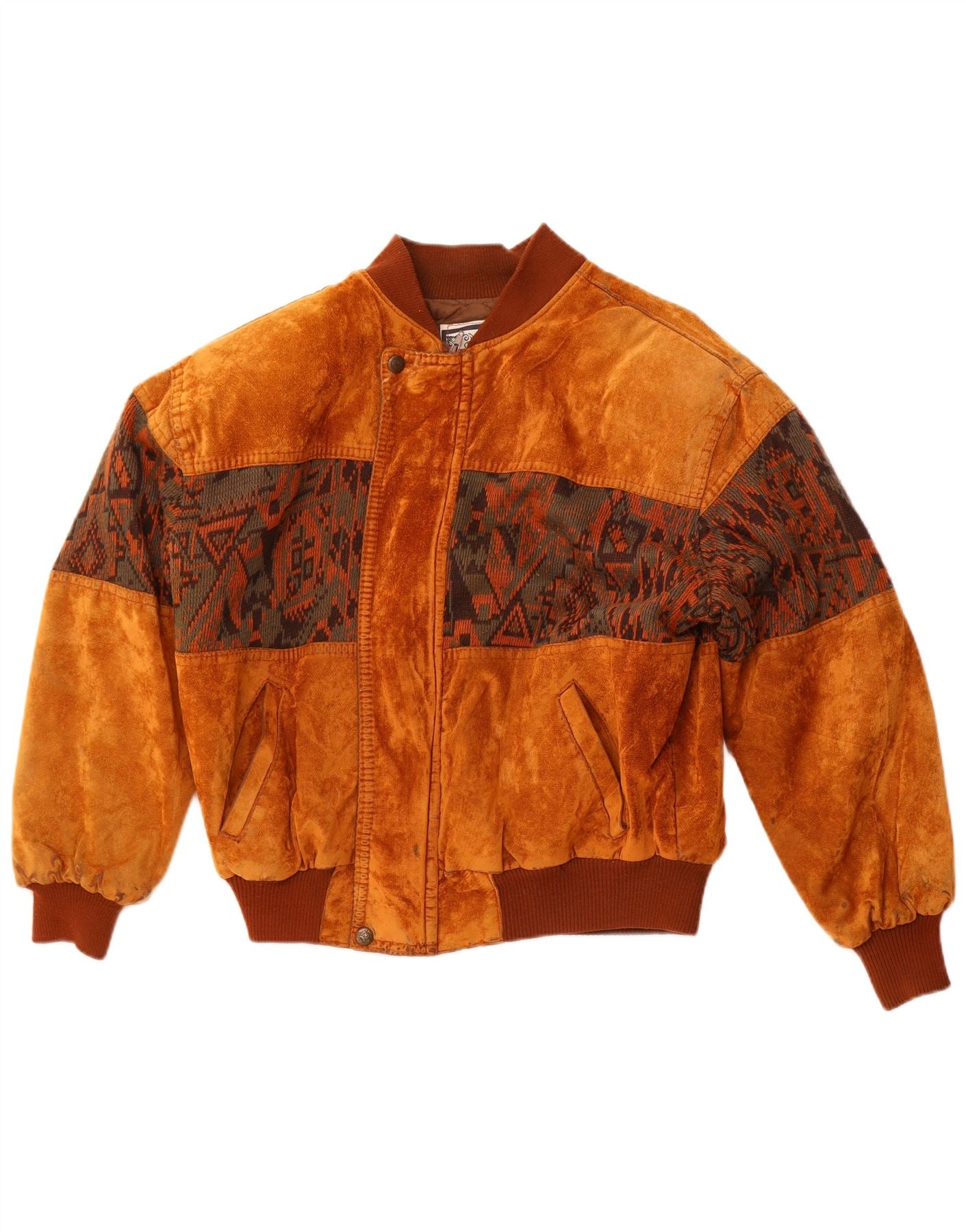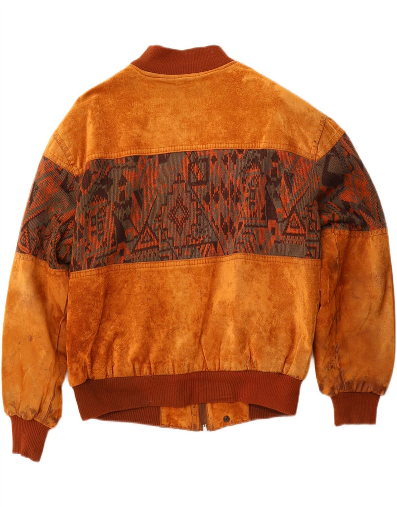 Jaqueta bomber masculina VINTAGE de camurça UK 42 XL marrom algodão geométrico
