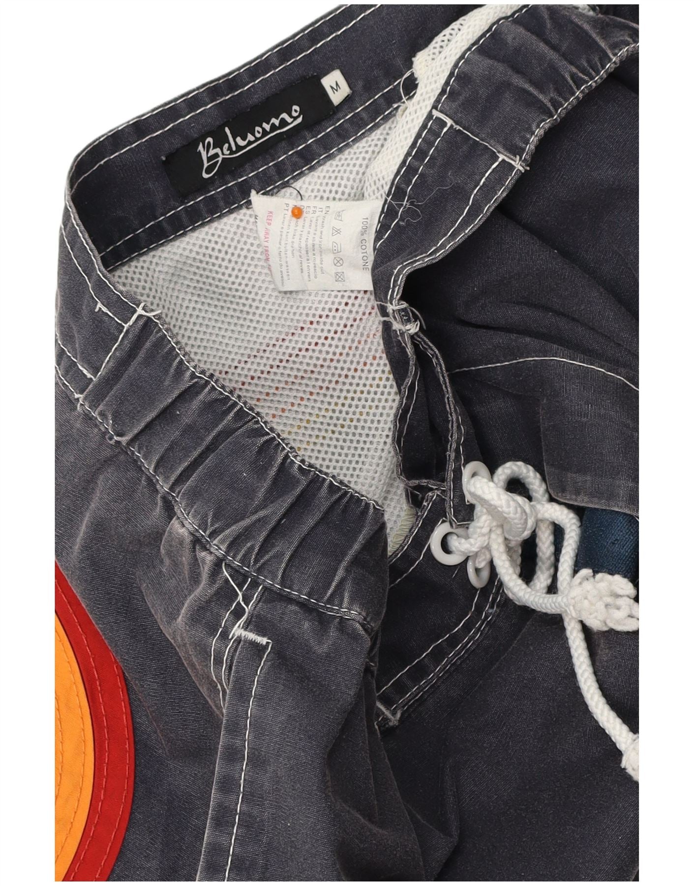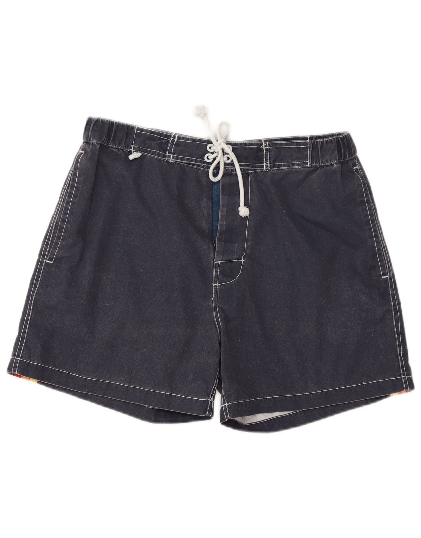 Shorts de natação masculino VINTAGE médio azul marinho colorblock algodão