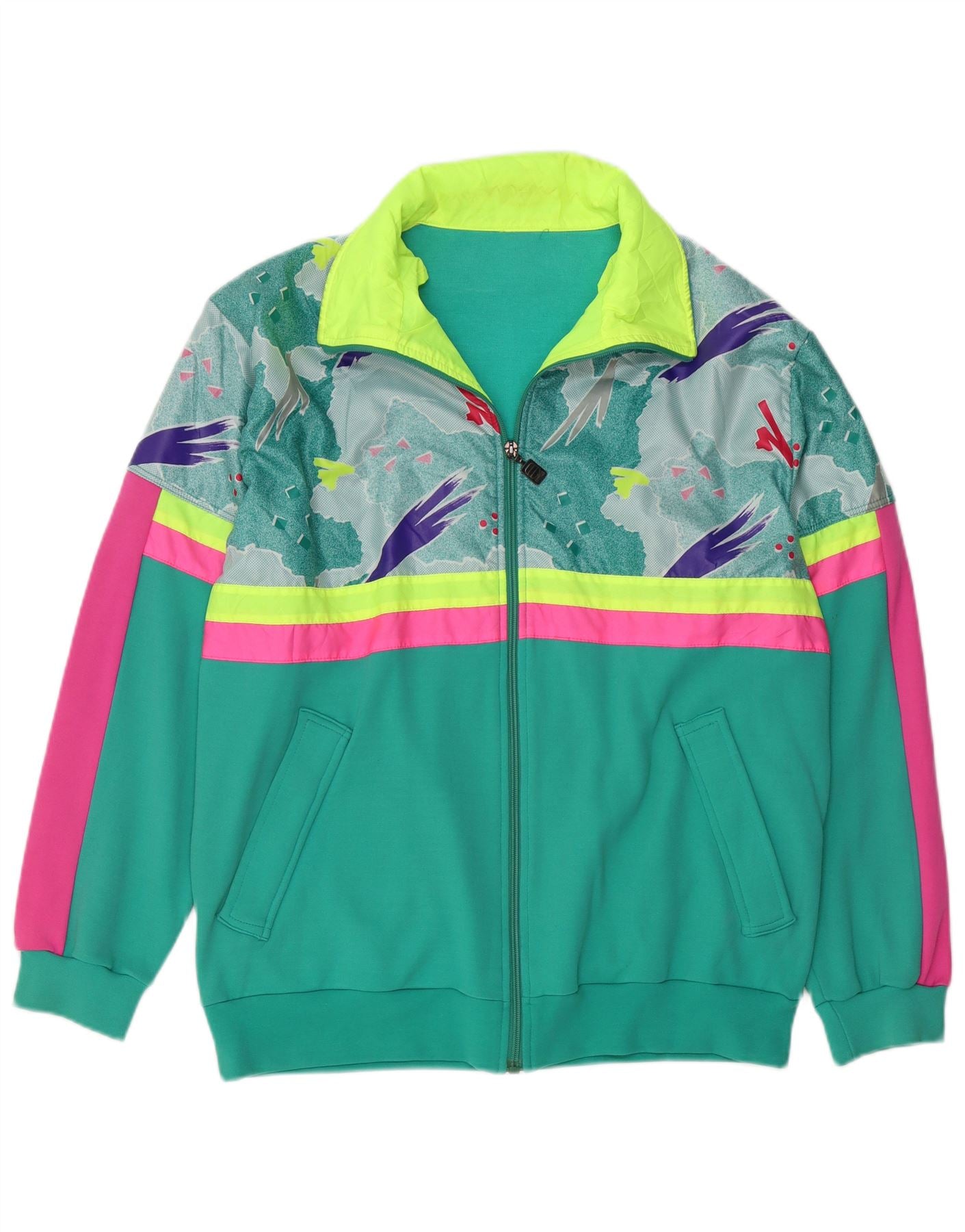 VINTAGE Jaqueta masculina de agasalho grande verde geométrica