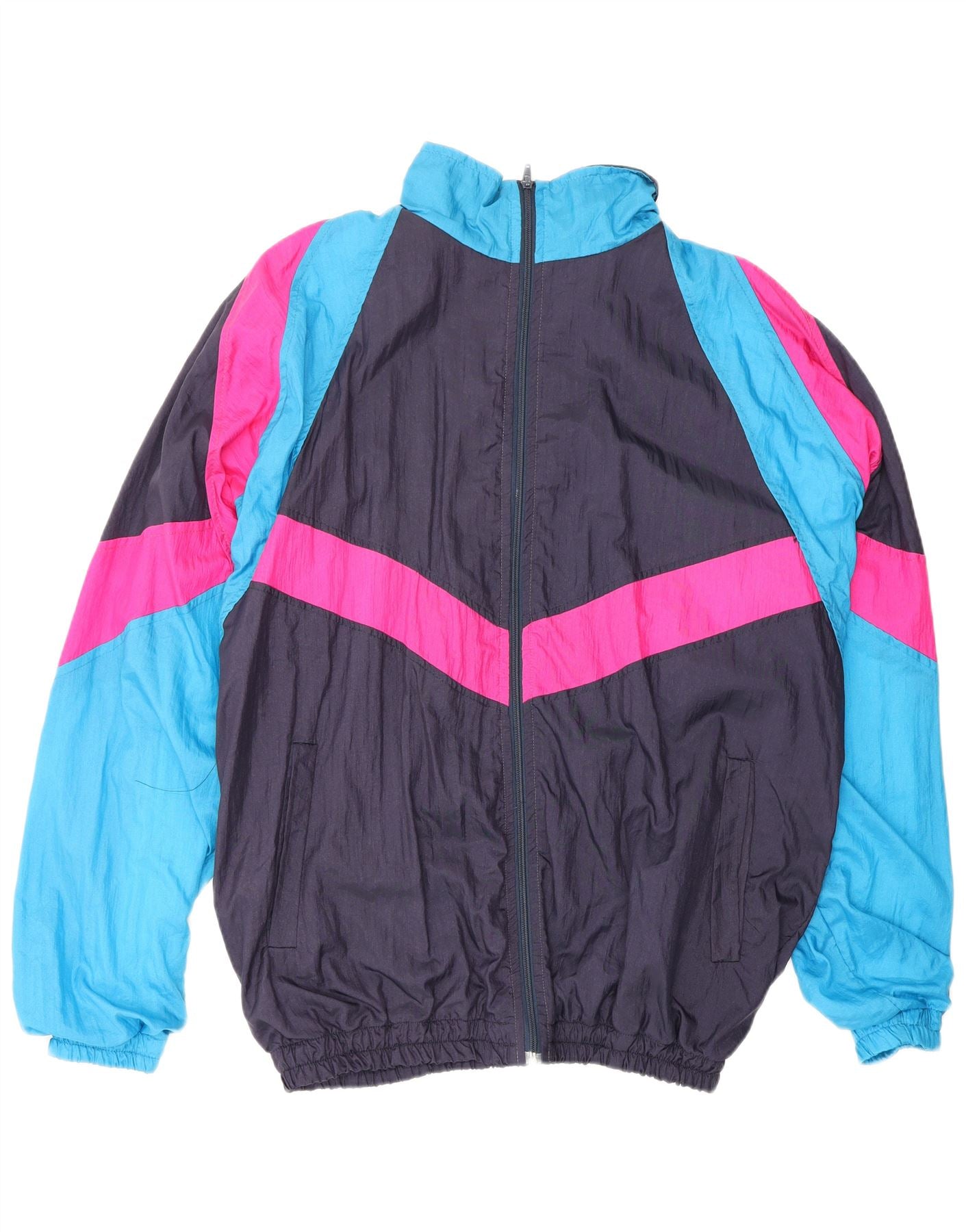 Jaqueta masculina VINTAGE de agasalho UK 44 XL azul marinho algodão colorblock
