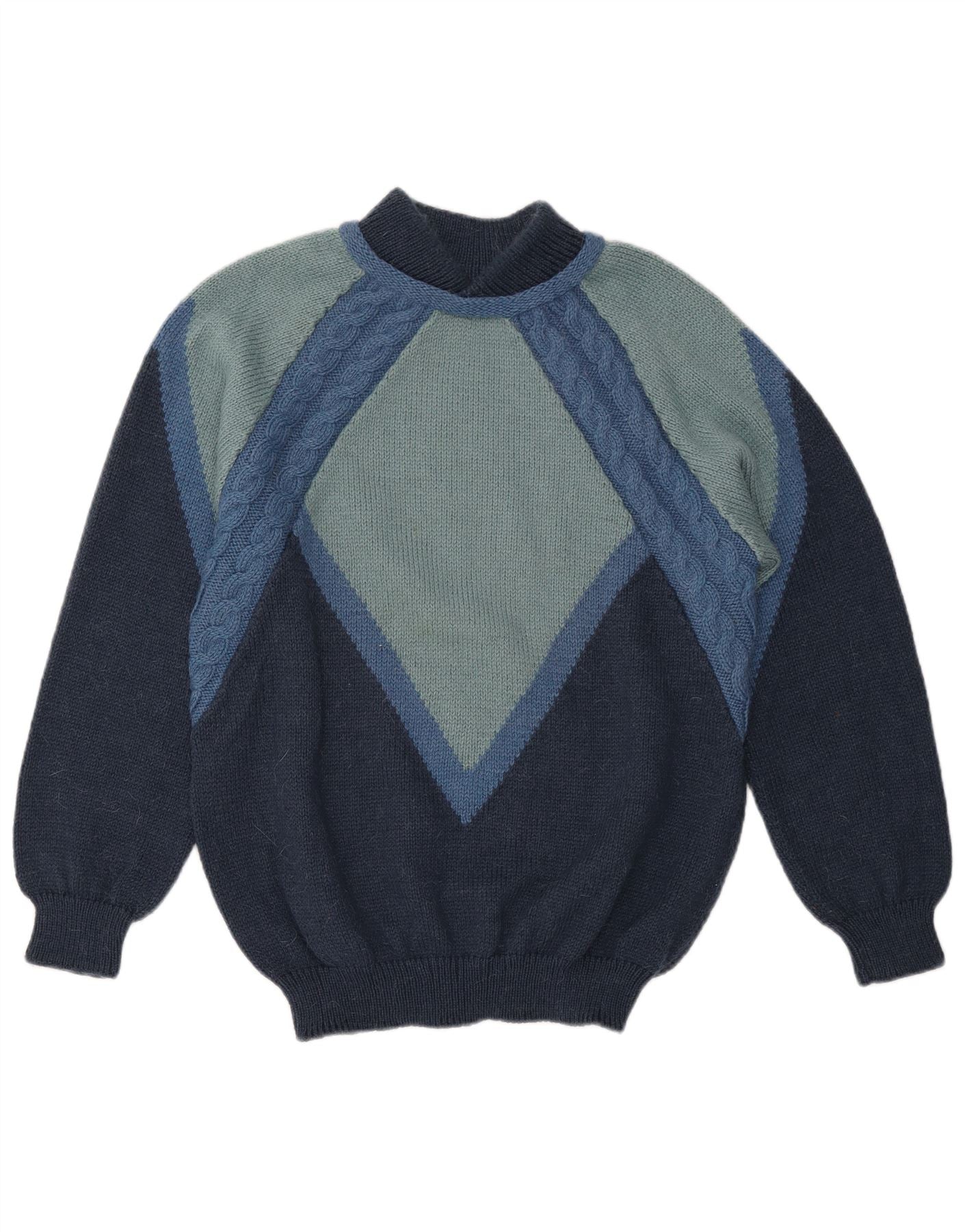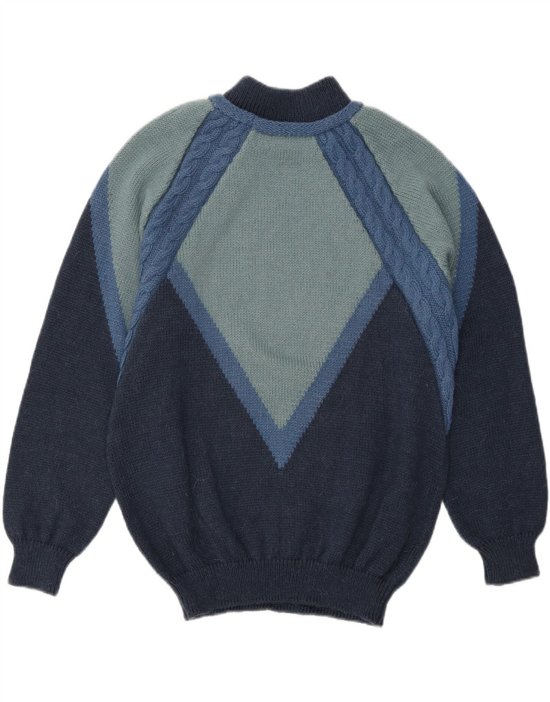 Suéter masculino VINTAGE com gola tartaruga médio azul marinho colorblock