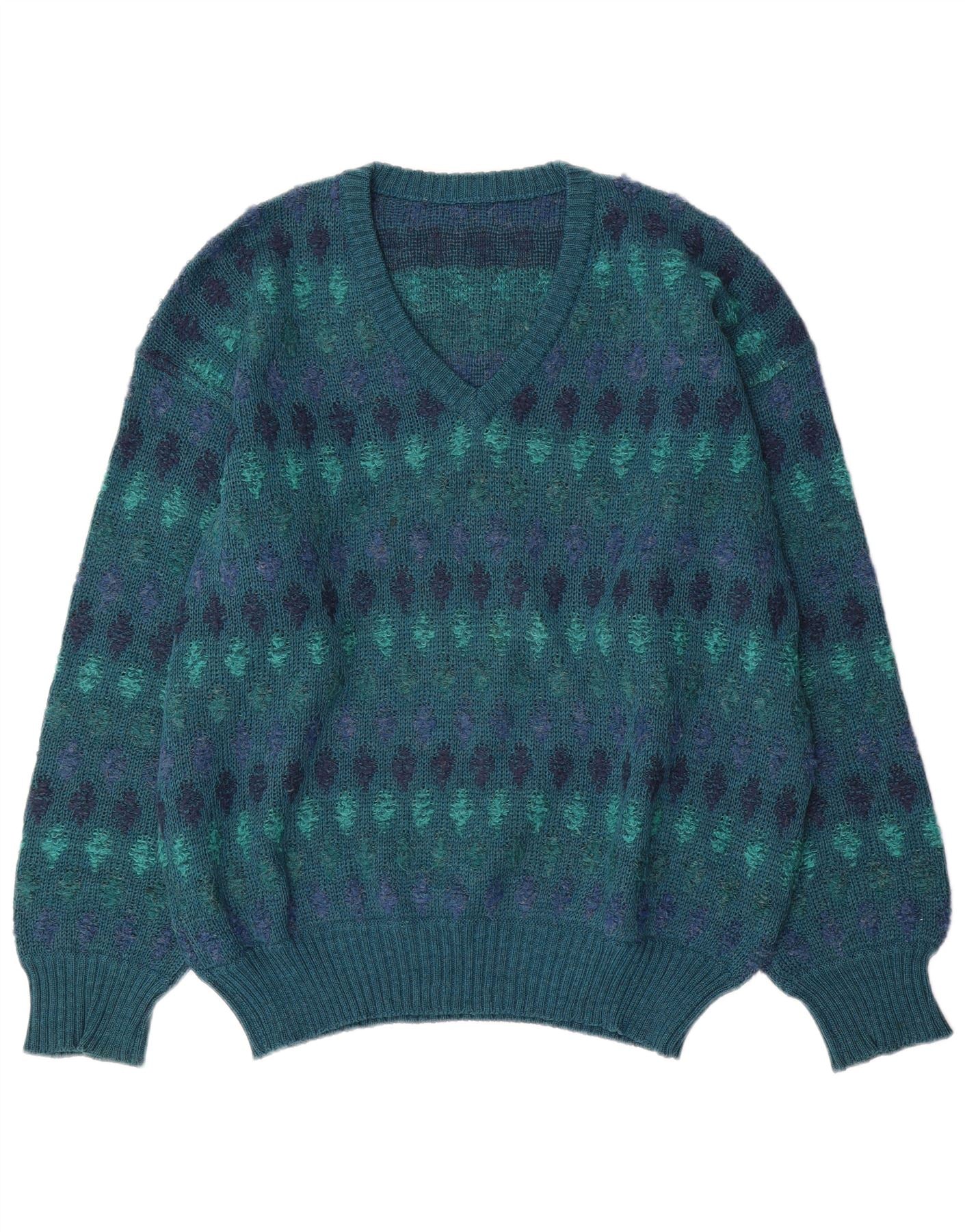 Suéter masculino vintage com decote em V IT 54 XL azul Fair Isle lã