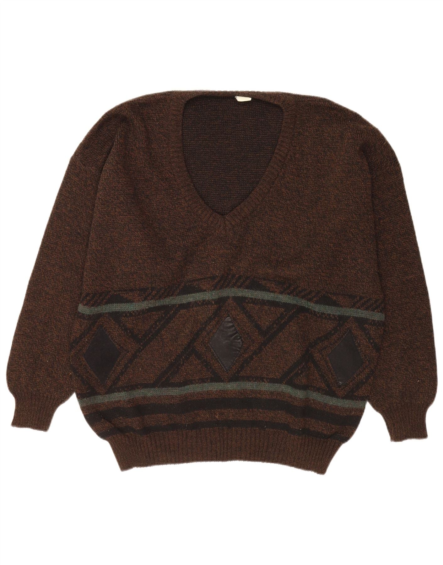 Suéter masculino VINTAGE com decote em V grande marrom Argyle/Diamante