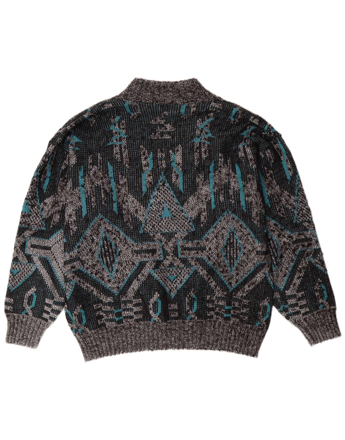 Suéter masculino VINTAGE com decote em V grande cinza geométrico