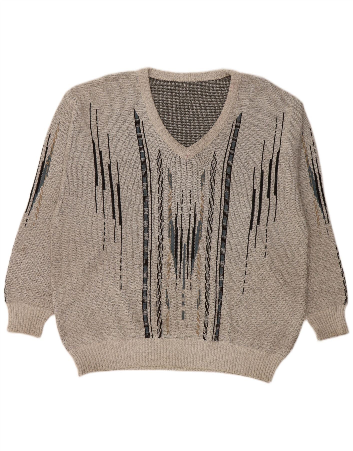Suéter masculino VINTAGE com decote em V grande cinza geométrico