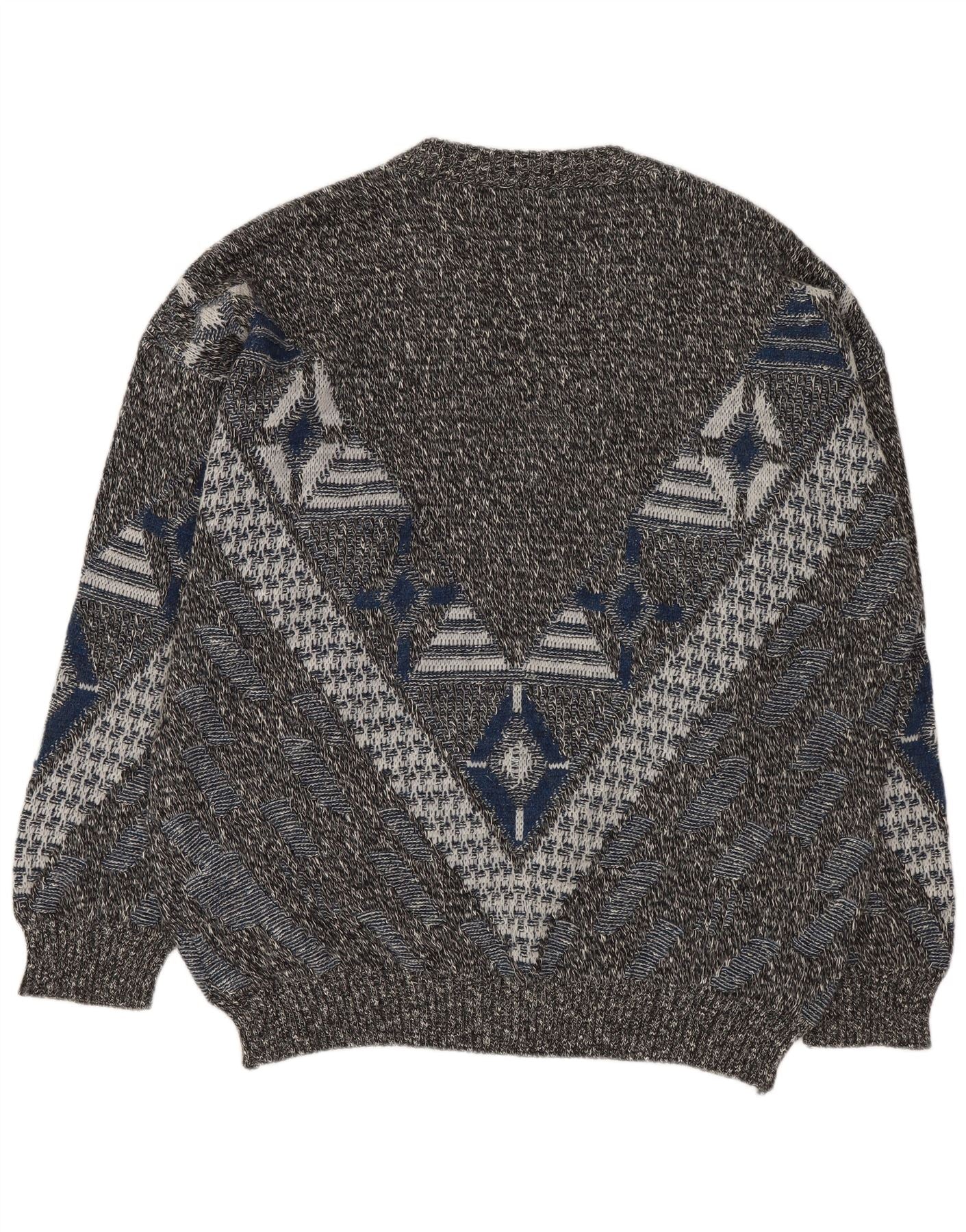 Suéter masculino VINTAGE com decote em V UK 46/48 2XL geométrico multicolorido