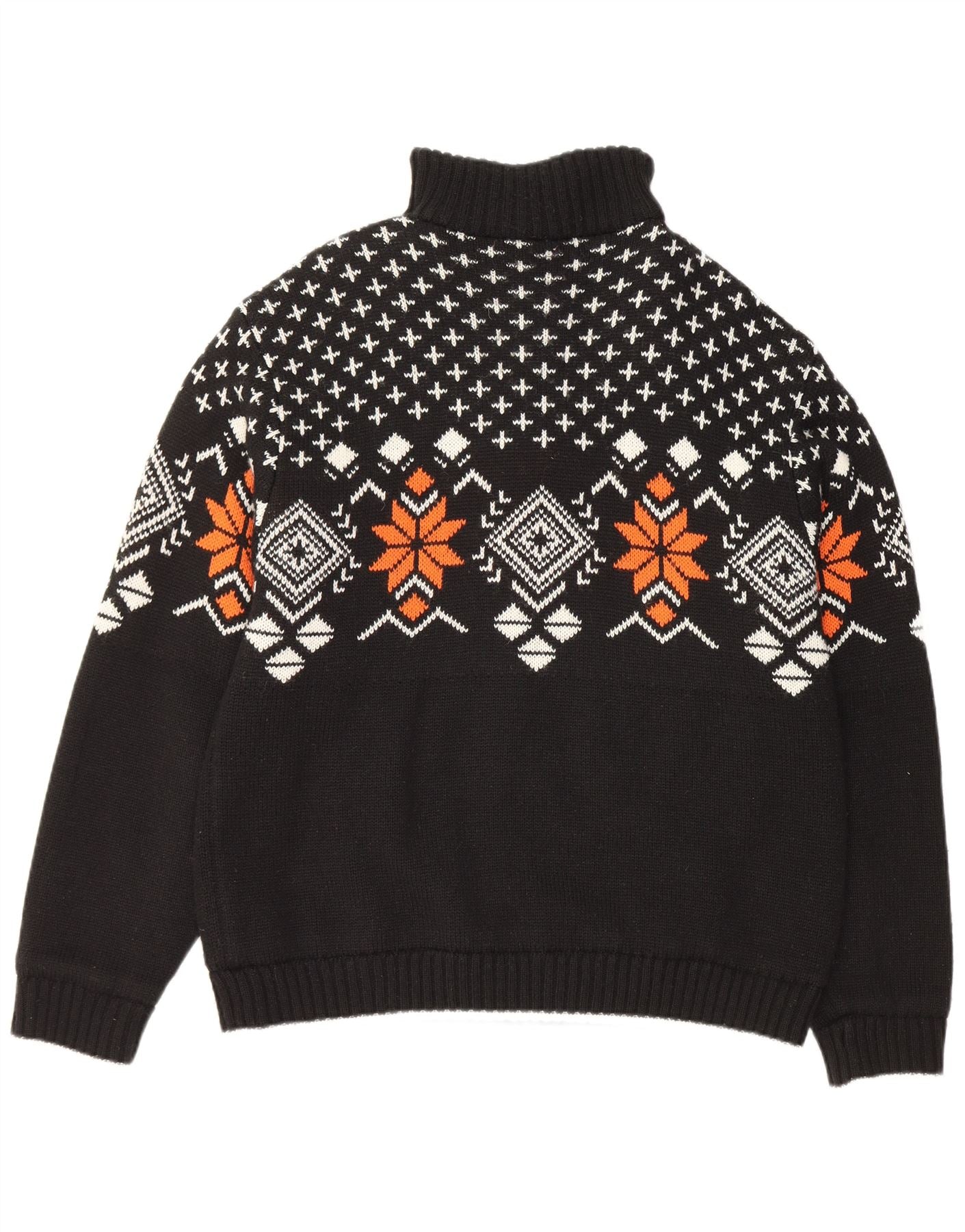 Suéter masculino VINTAGE com zíper e gola IT 52/54 grande preto Fair Isle