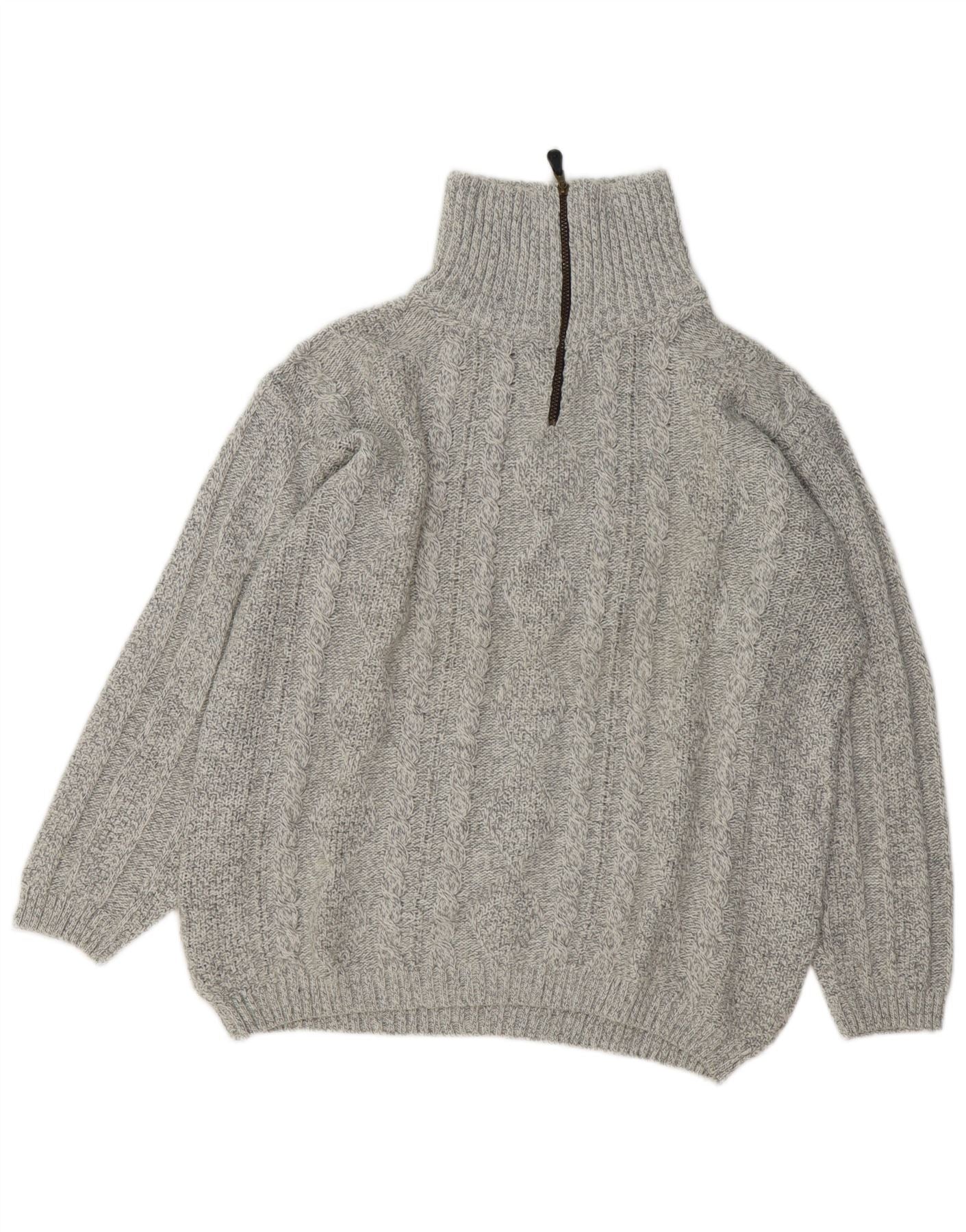 Suéter masculino VINTAGE com zíper e gola XL de lã cinza