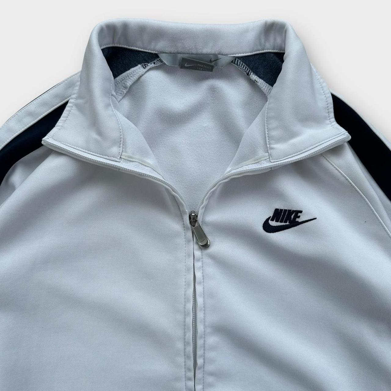 Jaqueta Nike vintage do início dos anos 2000 com zíper em branco e marinho com logotipo bordado no peito