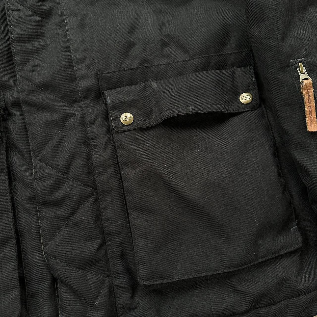 Jaqueta vintage No Fear com vários bolsos, estilo vintage, do início dos anos 2000, em preto com patch na frente