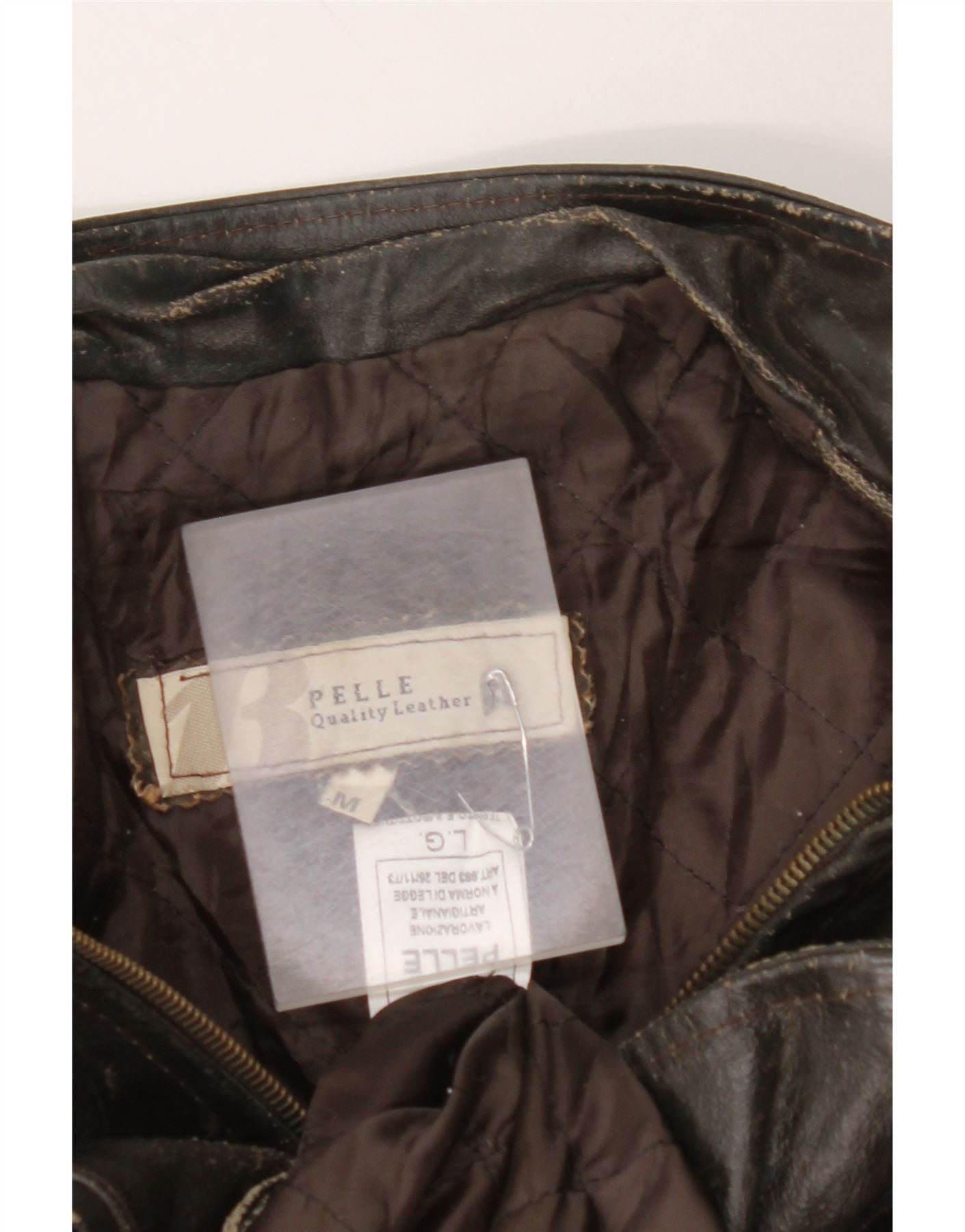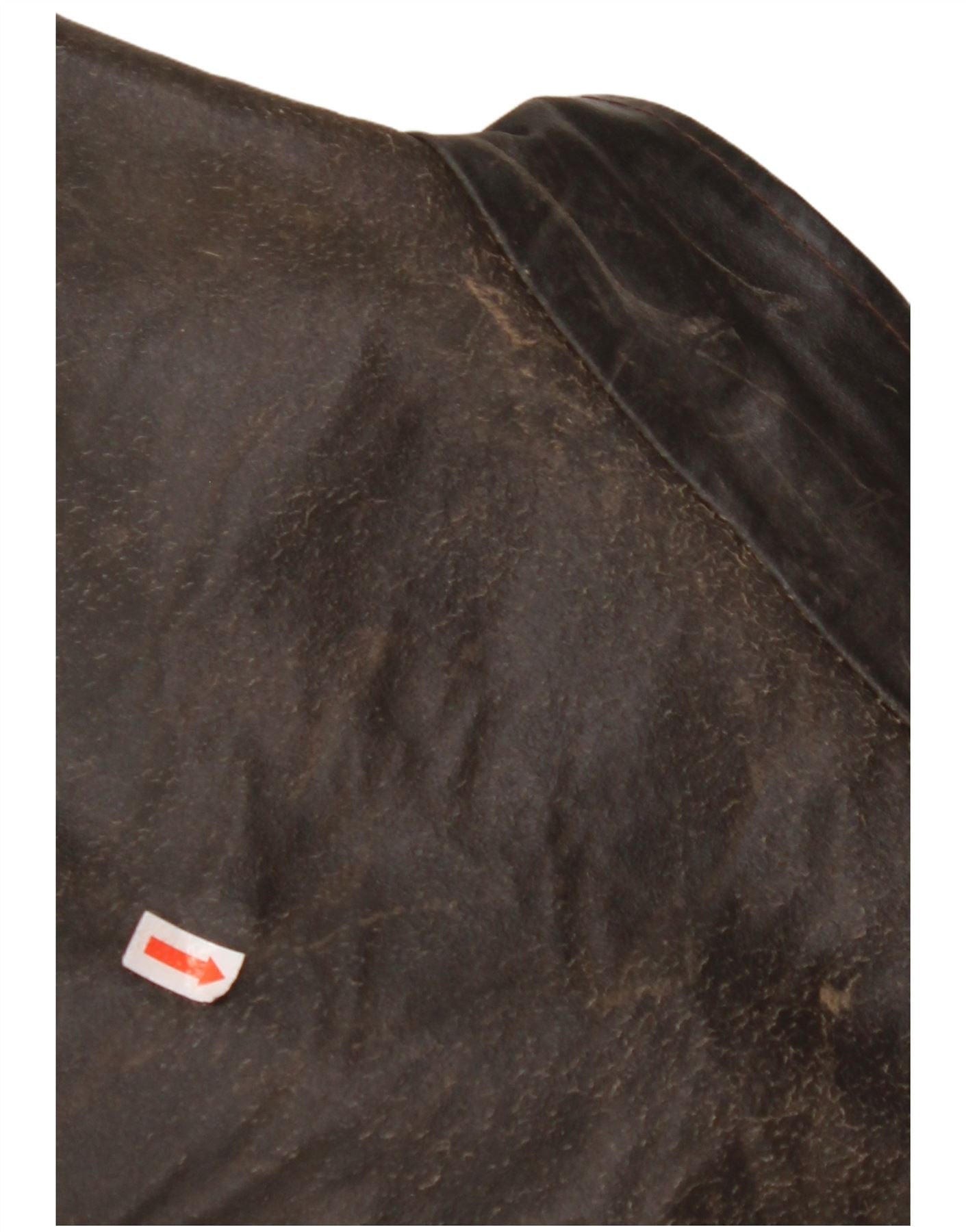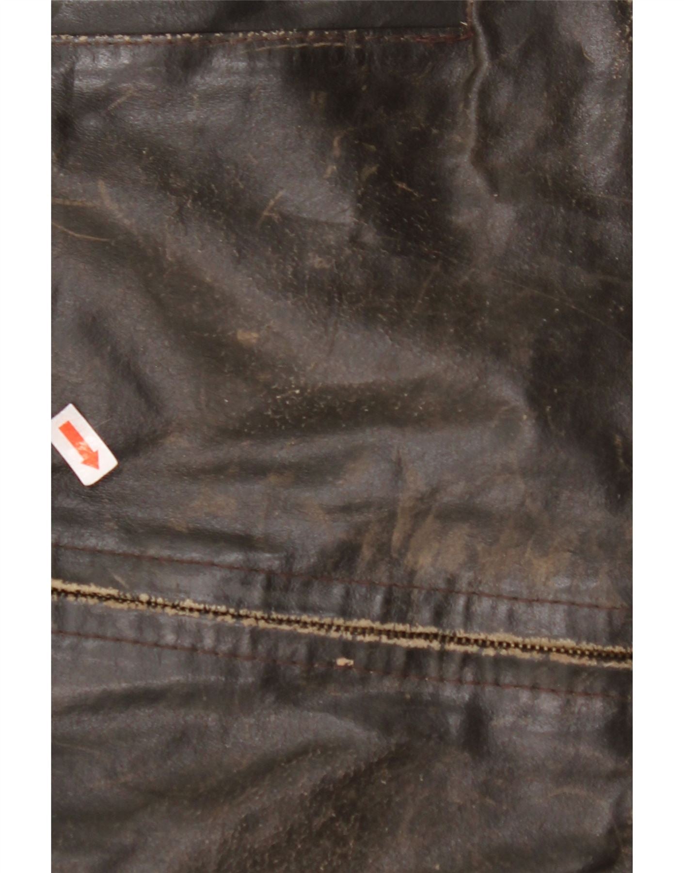 Jaqueta feminina de couro VINTAGE manga 3/4 Reino Unido 14 couro marrom médio