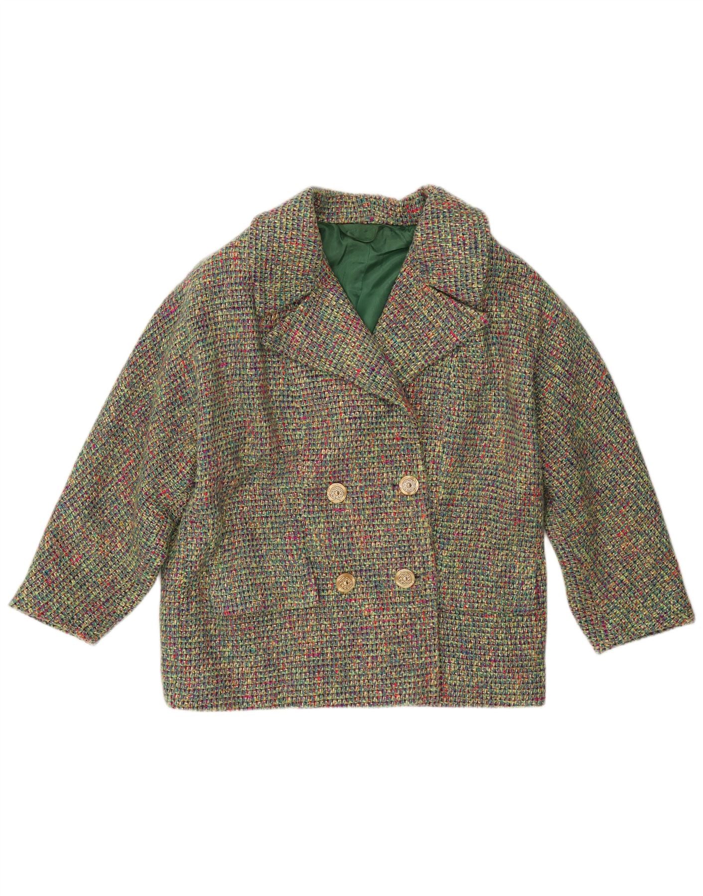 Sobretudo feminino VINTAGE manga 3/4 UK 18 XL multicolorido manchado