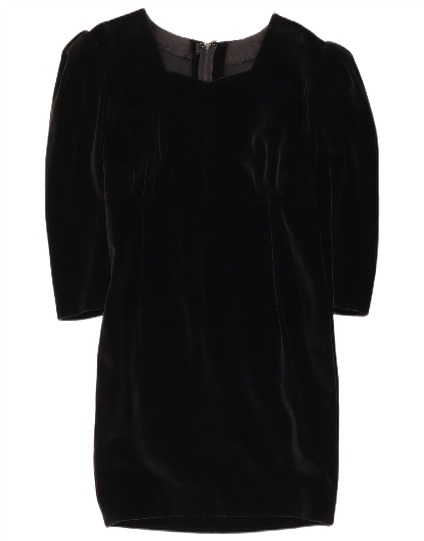 Vestido feminino vintage manga 3/4 com bainha UK 10 pequeno preto
