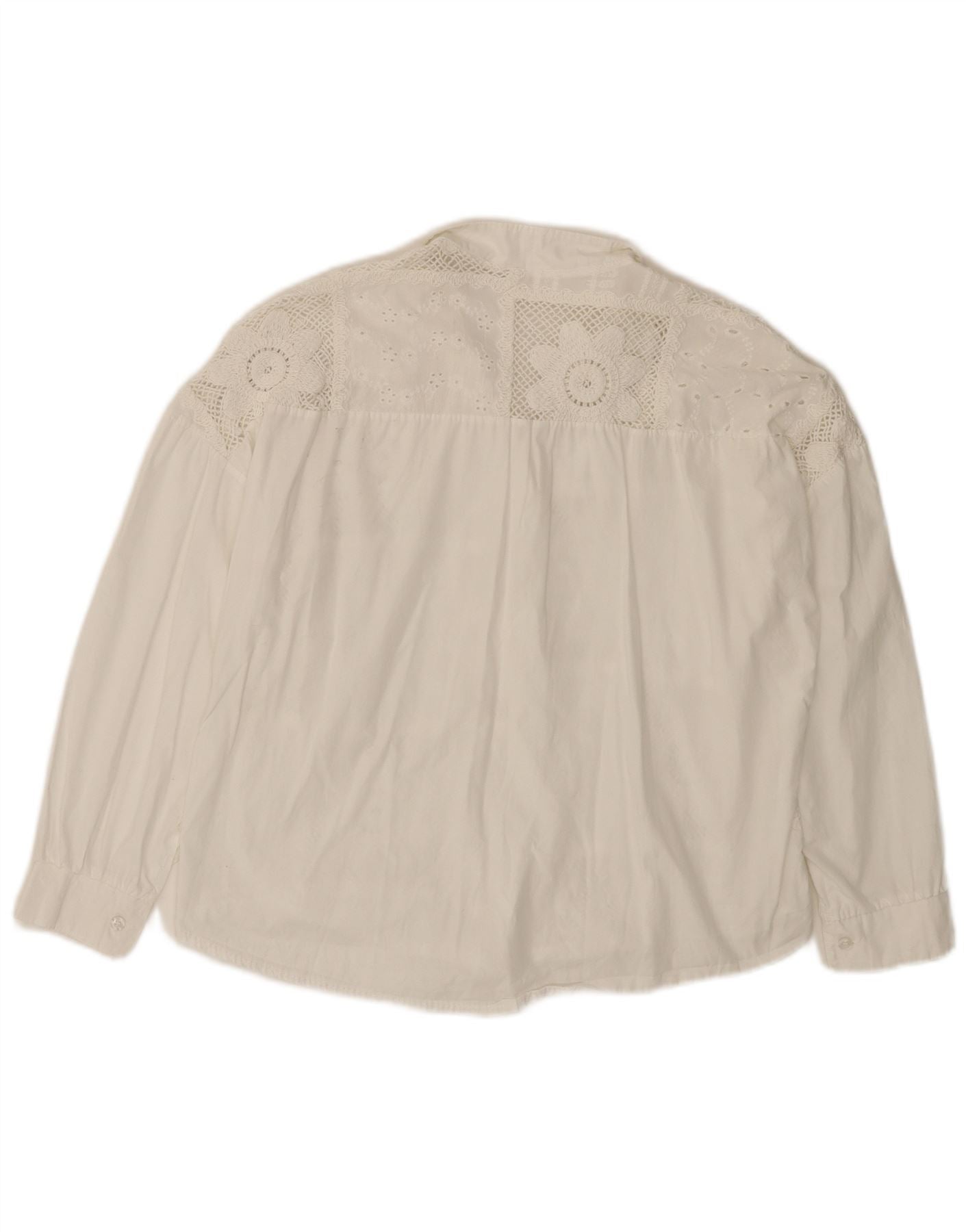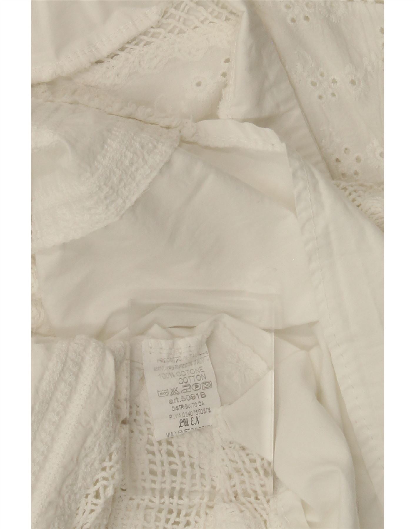 Blusa feminina VINTAGE manga 3/4 Reino Unido 14 algodão floral branco médio