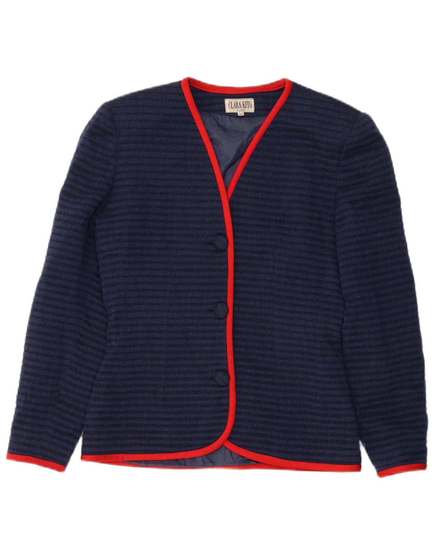 Jaqueta blazer feminina VINTAGE com 3 botões IT 44 médio azul marinho listrado