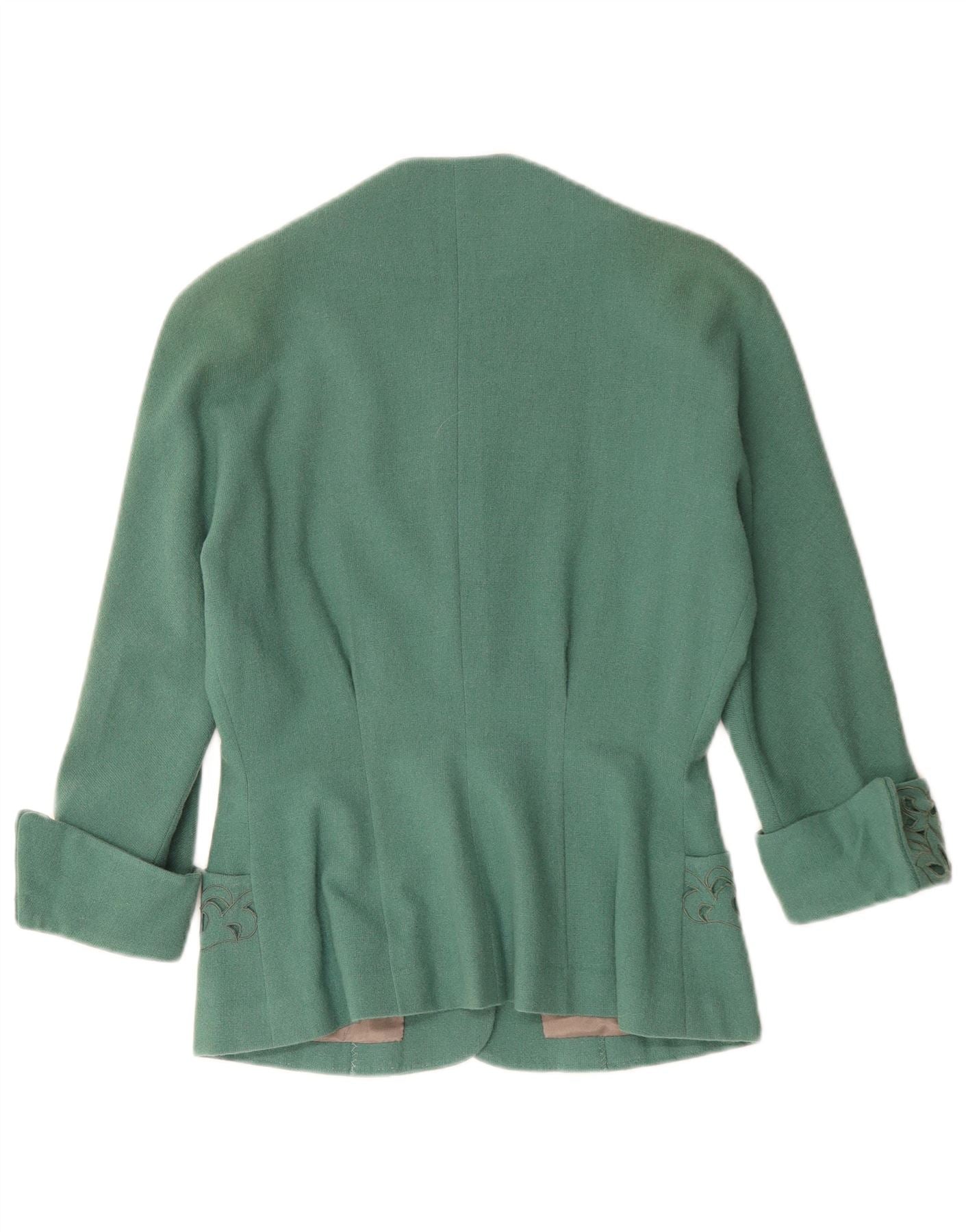 Jaqueta Blazer Feminina Vintage com 3 Botões Reino Unido 12 Paisley Verde Médio