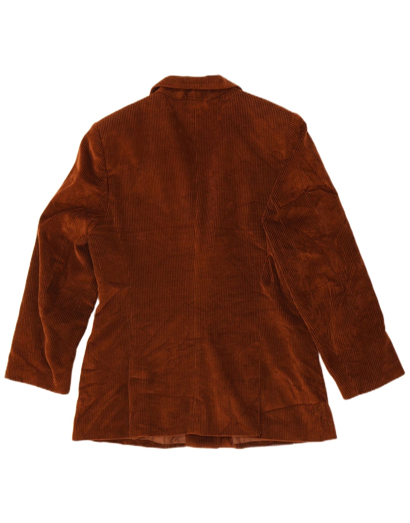 - Descrição da IA: Esta jaqueta blazer feminina Vintage é confeccionada em veludo cotelê marrom rico, oferecendo uma textura distinta. Possui decote clássico com gola e fechamento frontal com três botões. Mangas compridas e ajuste regular garantem um uso confortável. A frente é detalhada com um padrão de diamante argyle, adicionando um toque único. Bolsos práticos e forro completo completam esta peça estilosa.