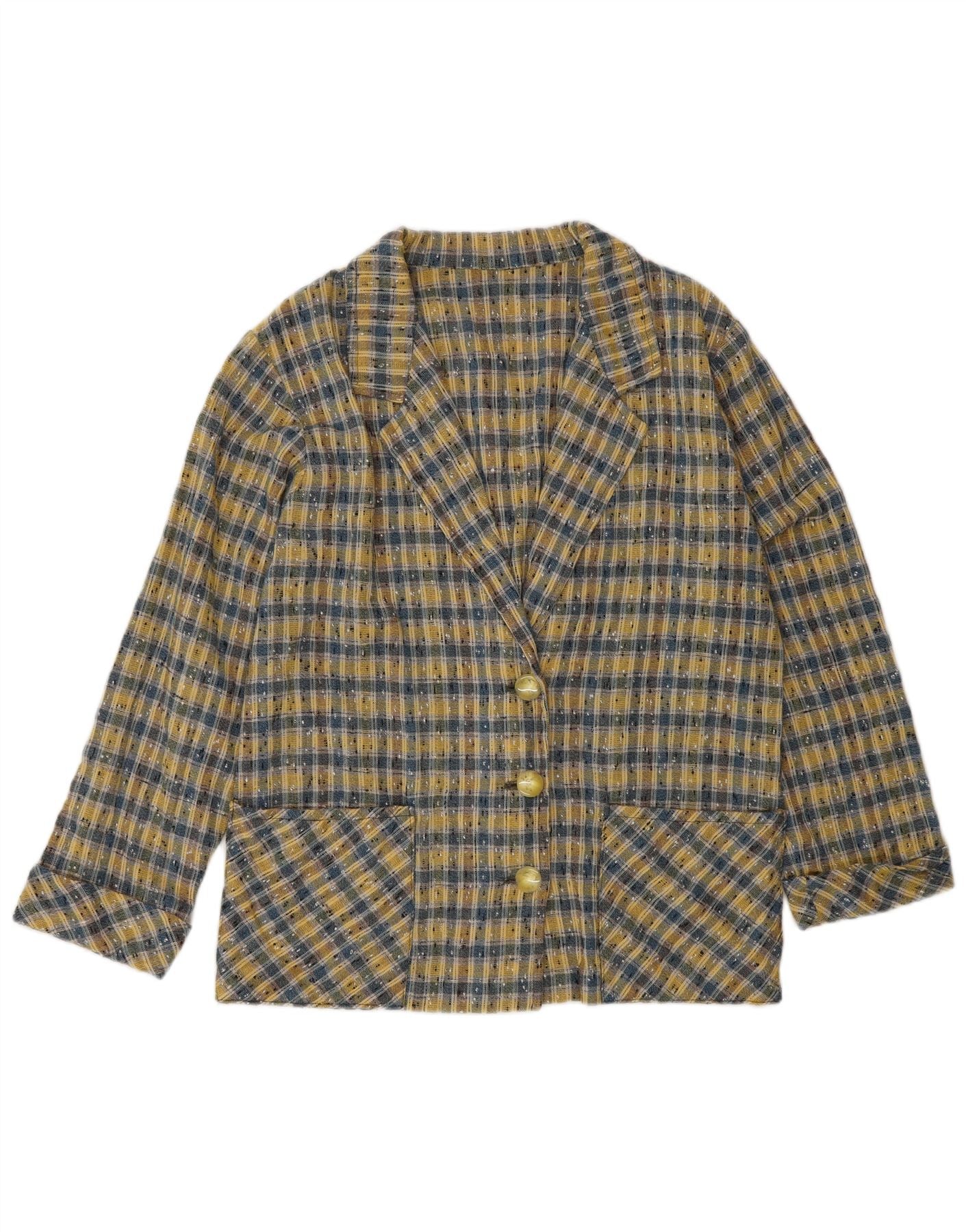 Jaqueta blazer feminina VINTAGE com 3 botões Reino Unido 14 xadrez amarelo médio