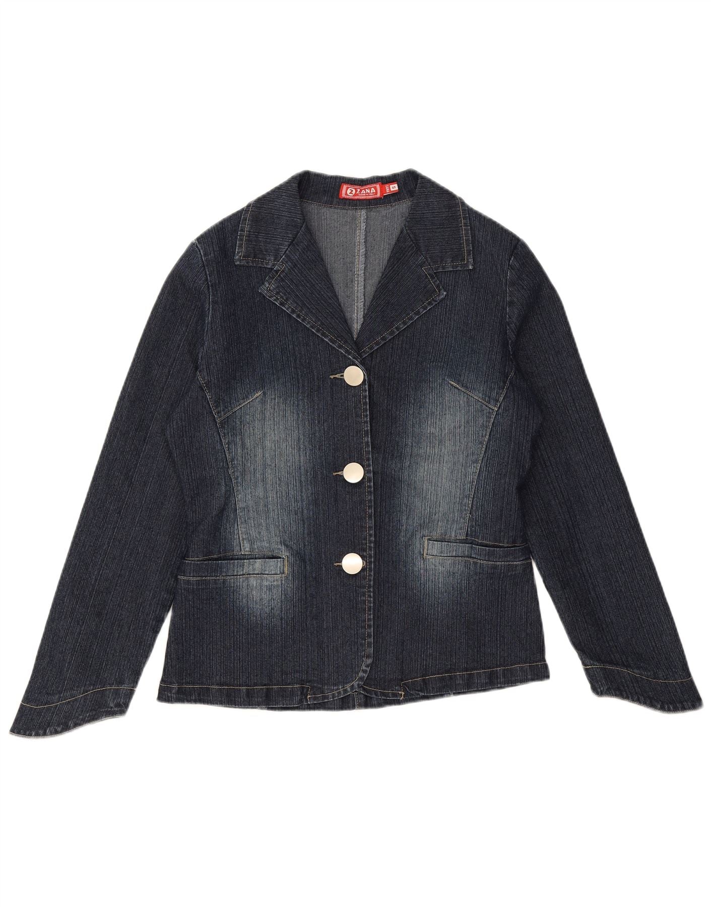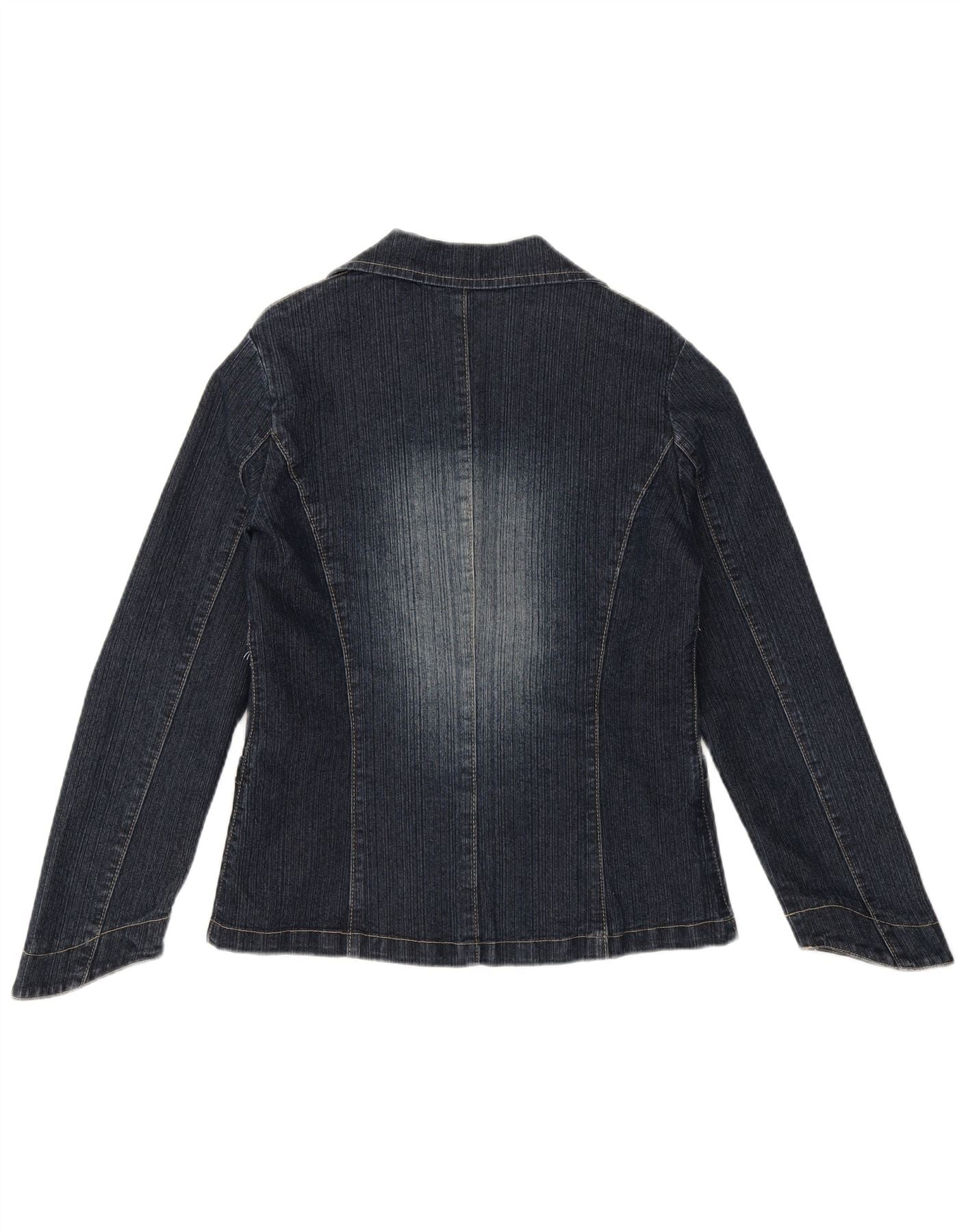 Jaqueta blazer jeans feminina VINTAGE com 3 botões Reino Unido 10 pequeno algodão azul marinho