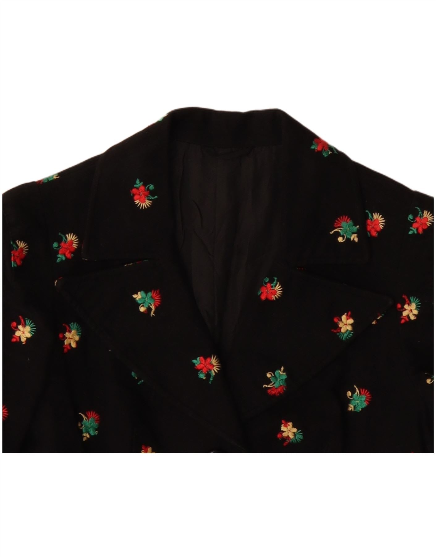 Jaqueta blazer feminina VINTAGE com 4 botões UK 10 pequena floral preta