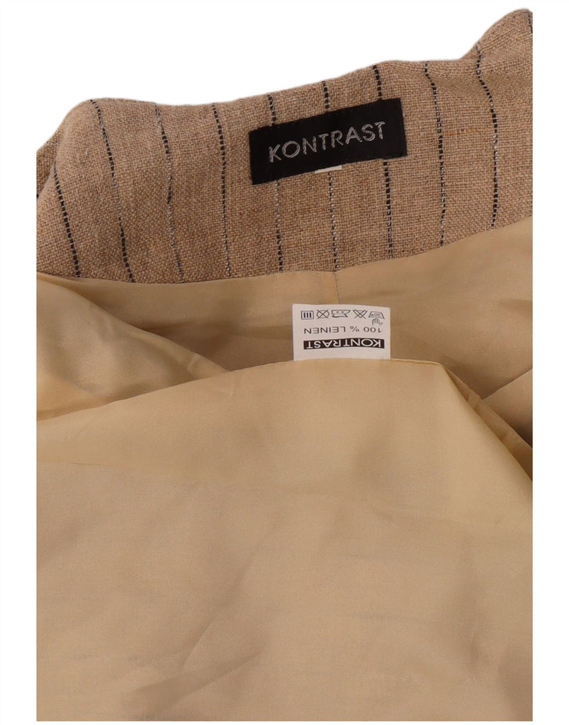 Jaqueta blazer feminina VINTAGE com 4 botões Reino Unido 14 linho listrado bege médio