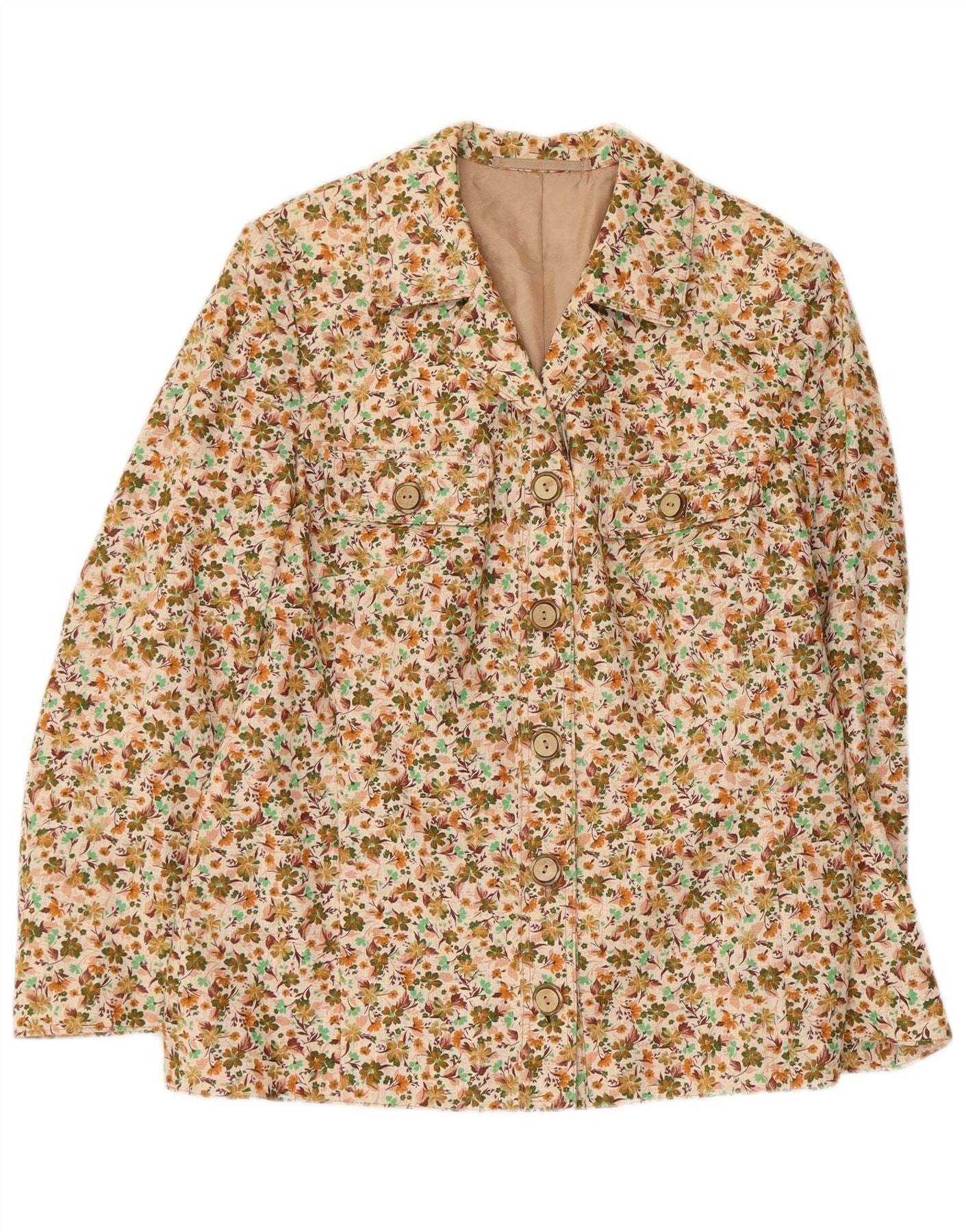 Jaqueta Blazer Vintage Feminina com 5 Botões Reino Unido 12 Floral Bege Médio