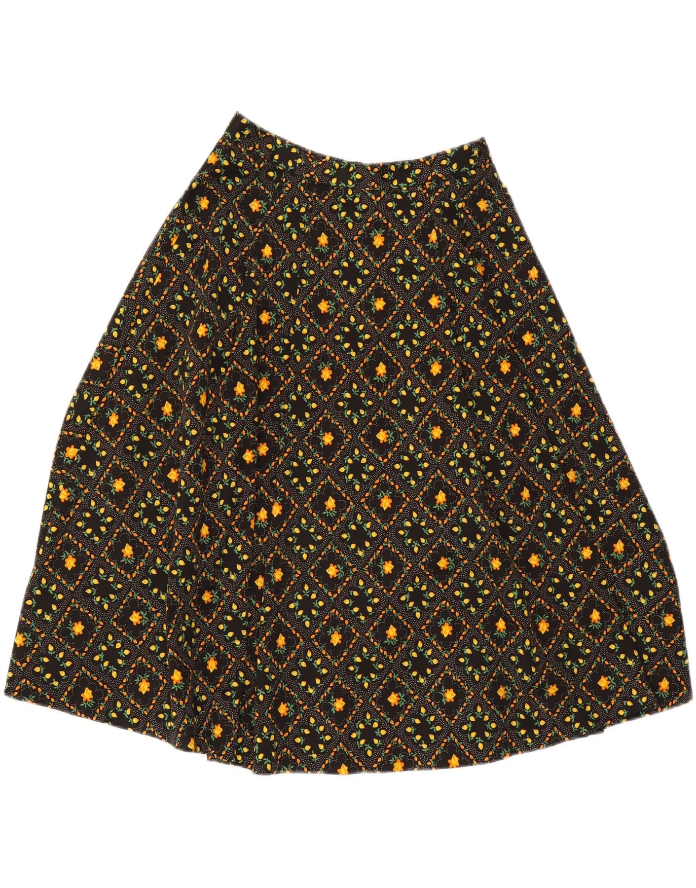 Saia evasê feminina VINTAGE W26 pequena floral preta