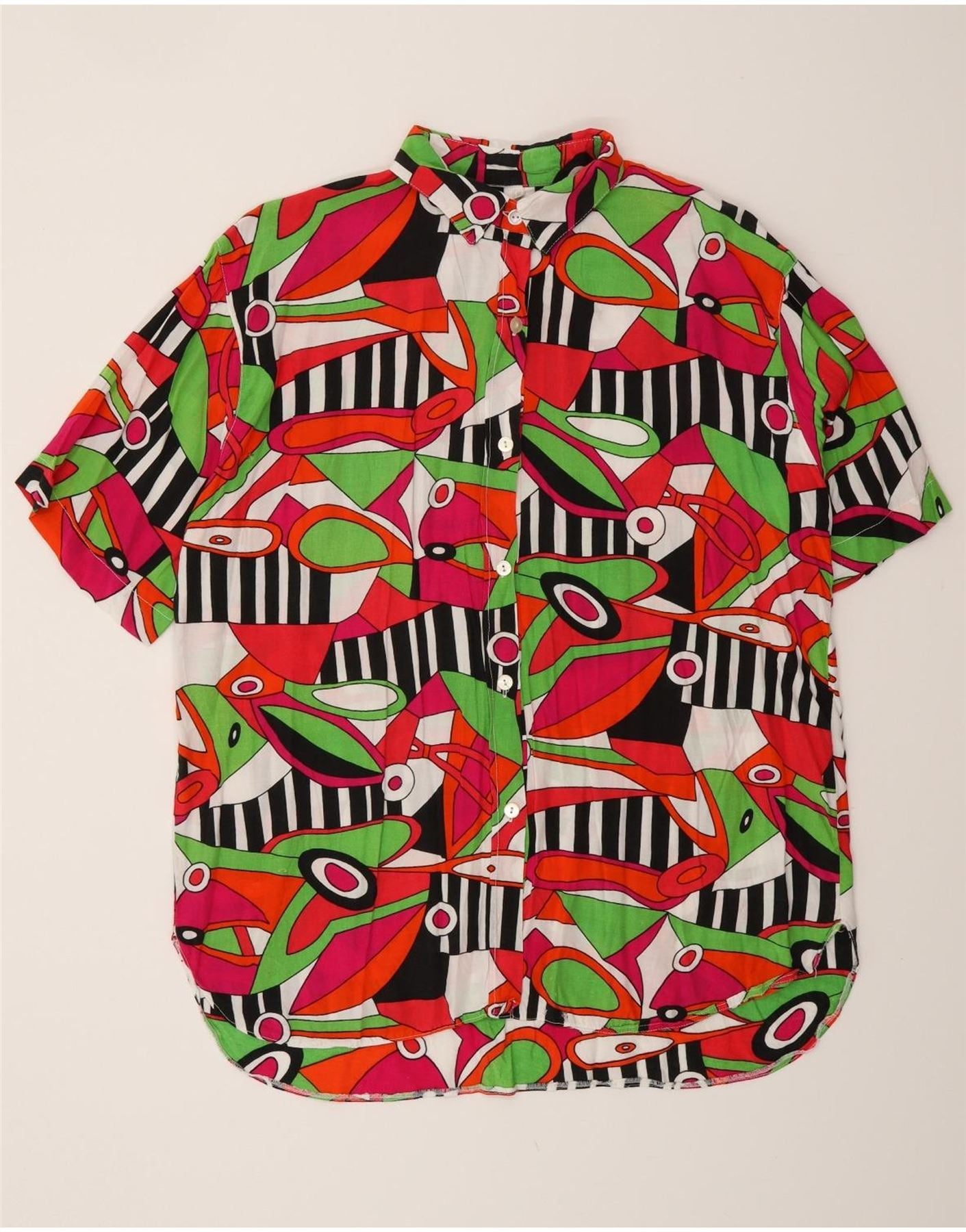 Blusa feminina VINTAGE com estampa abstrata UK 14 média multicolorida