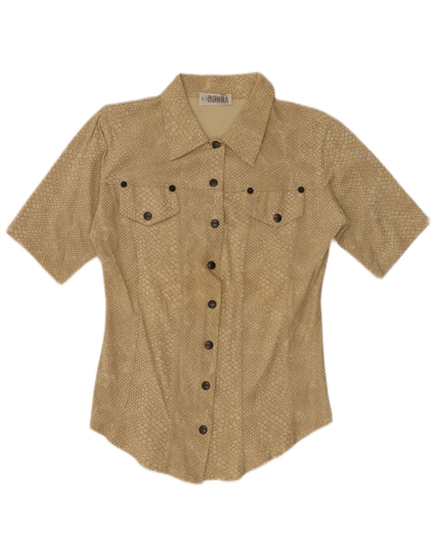 Camisa feminina VINTAGE com estampa abstrata UK 12 bege médio estampa animal