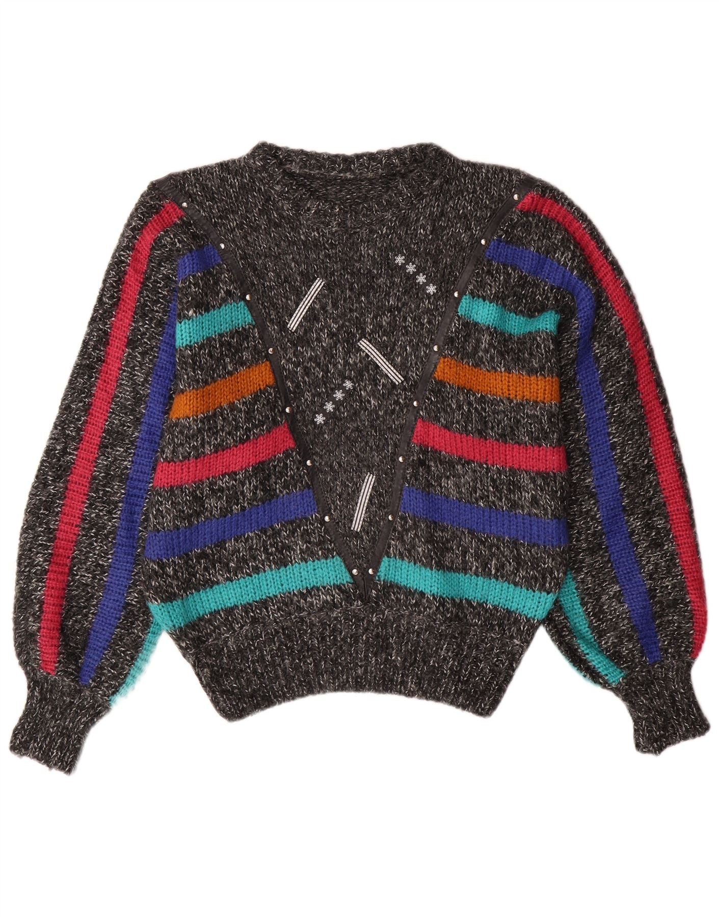 Suéter feminino VINTAGE Batwing com gola redonda Reino Unido 14 listrado cinza médio