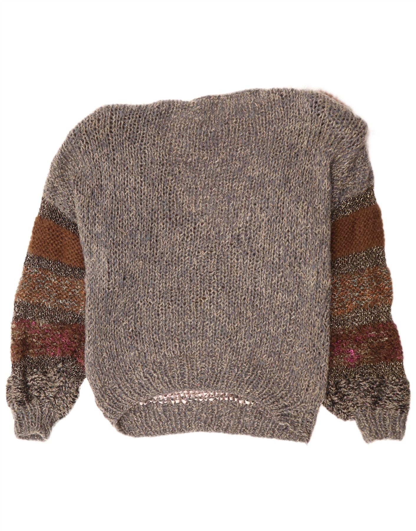 Suéter feminino VINTAGE com gola canoa EU 40/42 bloco de cores cinza médio
