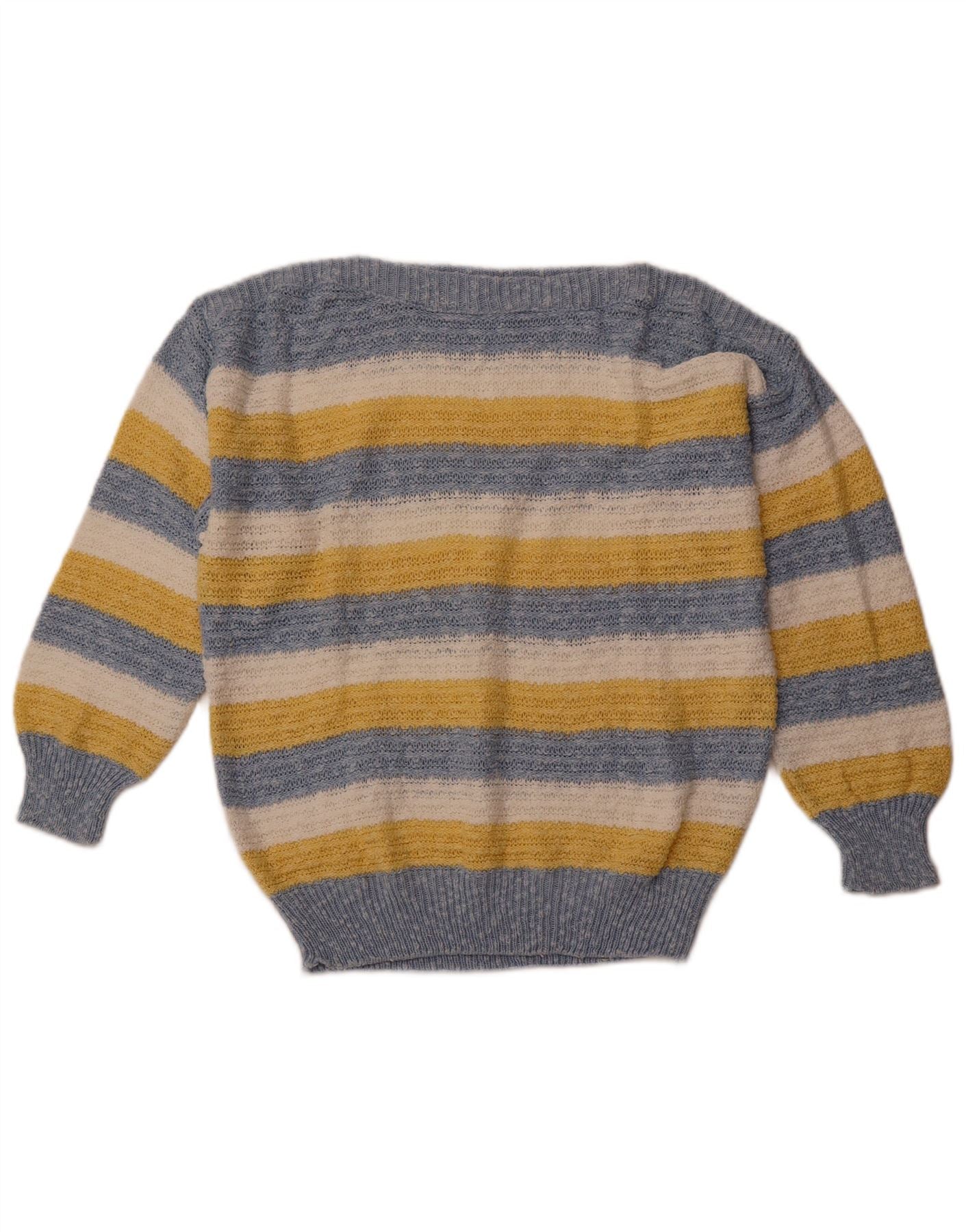 Suéter feminino VINTAGE com gola canoa IT 42 algodão listrado azul médio