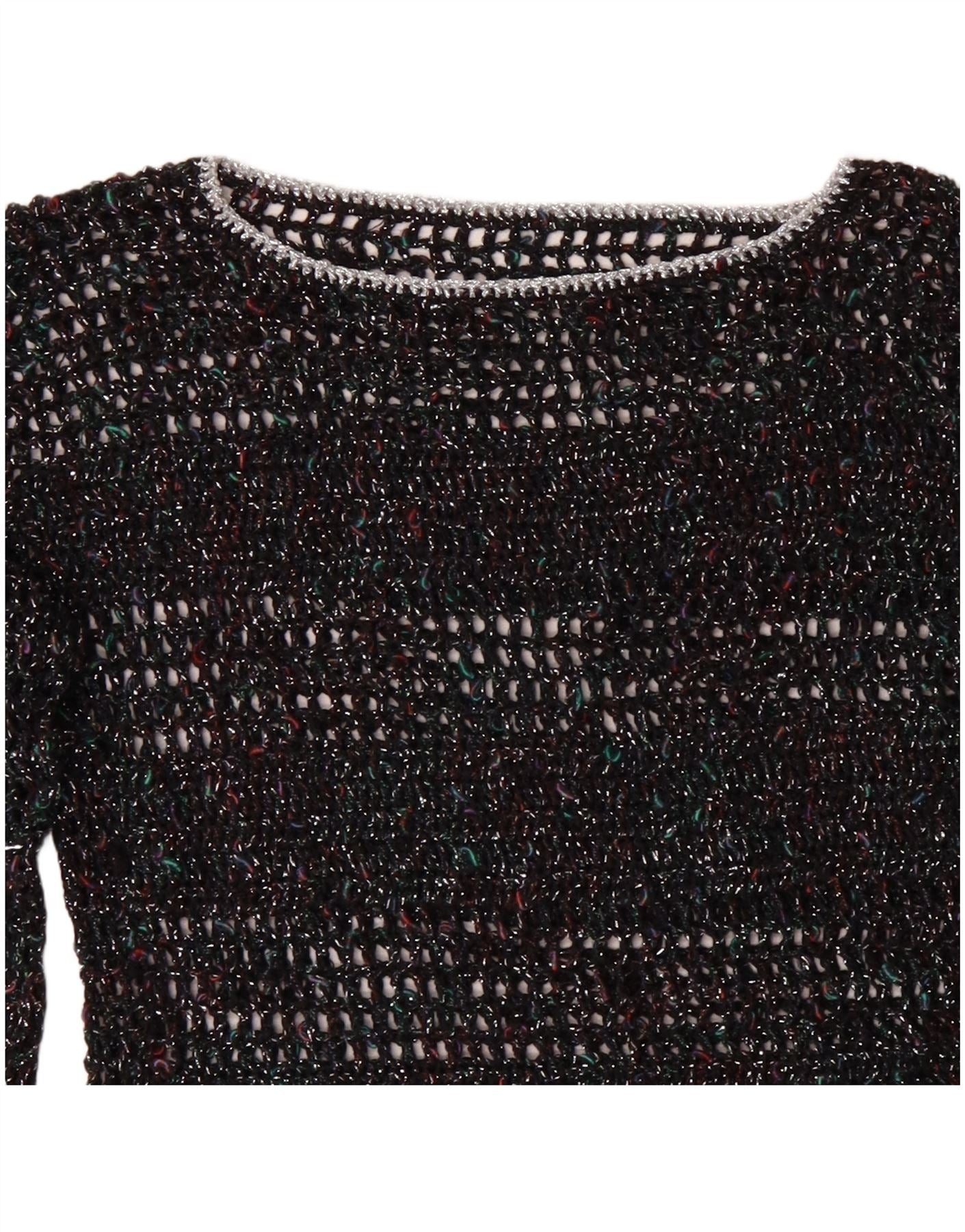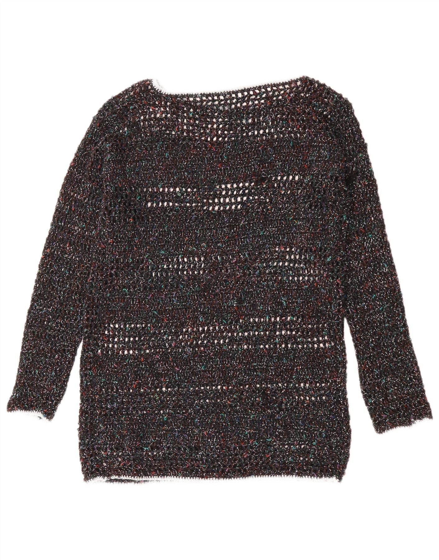 Suéter feminino VINTAGE com gola canoa UK 12 médio multicolorido manchado