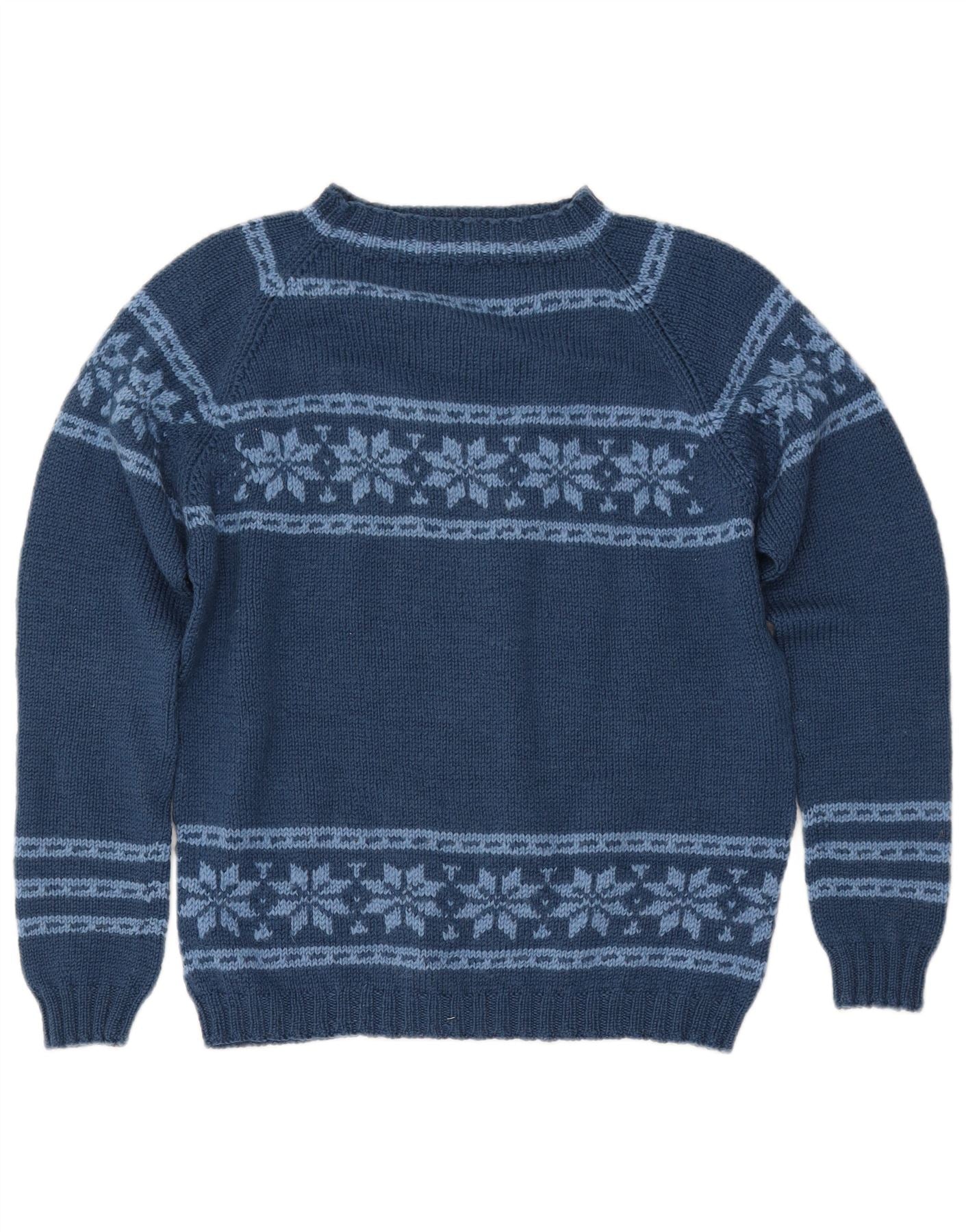 Suéter feminino VINTAGE com gola canoa Reino Unido 12 médio azul marinho Fair Isle
