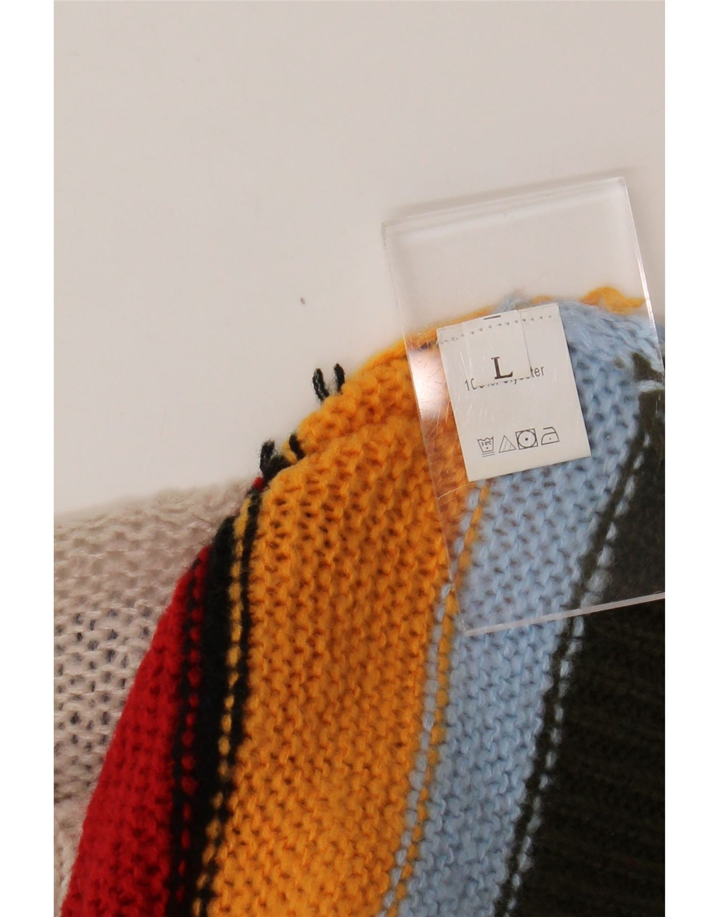 Suéter feminino VINTAGE com gola canoa Reino Unido 14 grande multicolorido