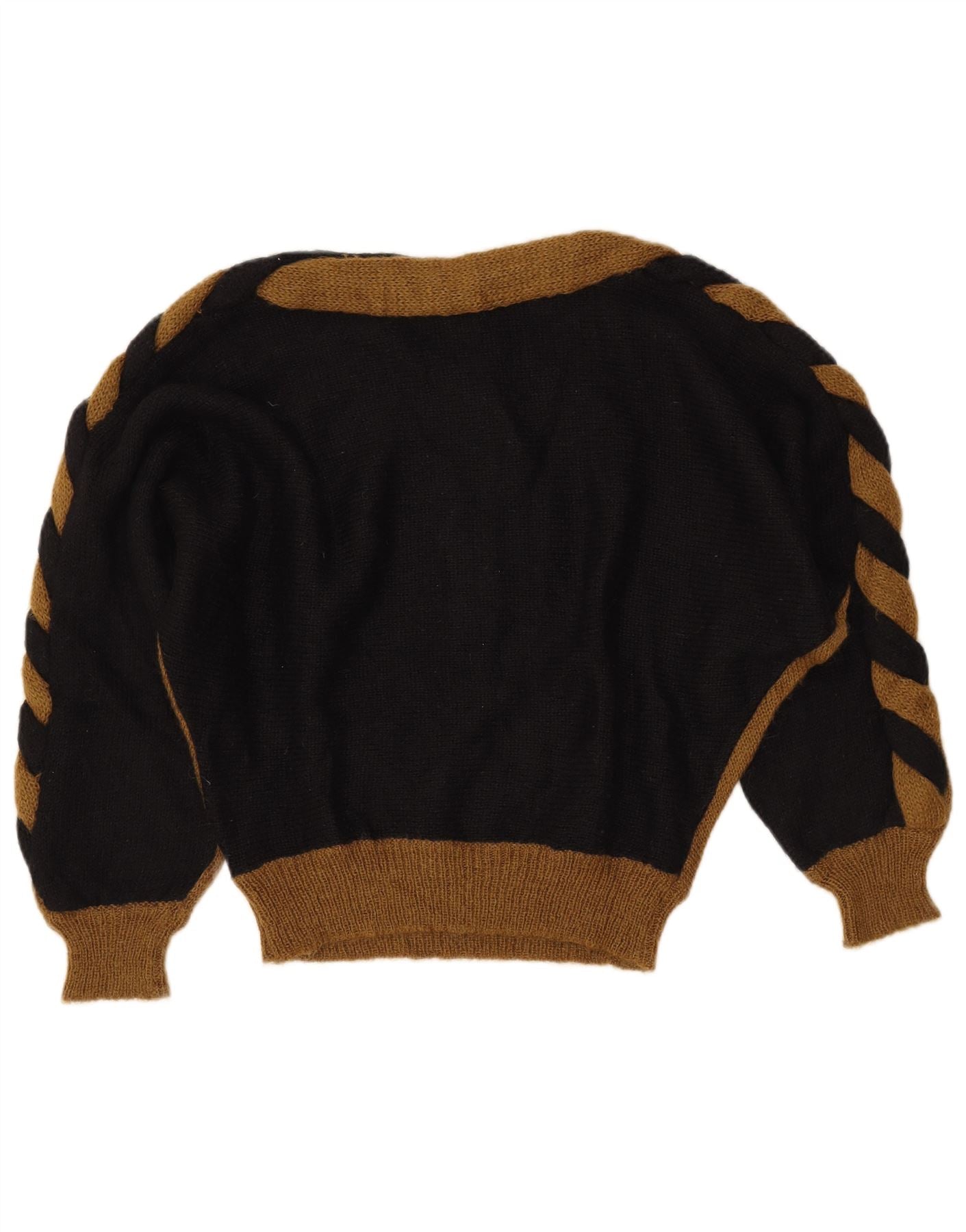 Suéter feminino VINTAGE com gola canoa UK 14 bloco colorido preto médio