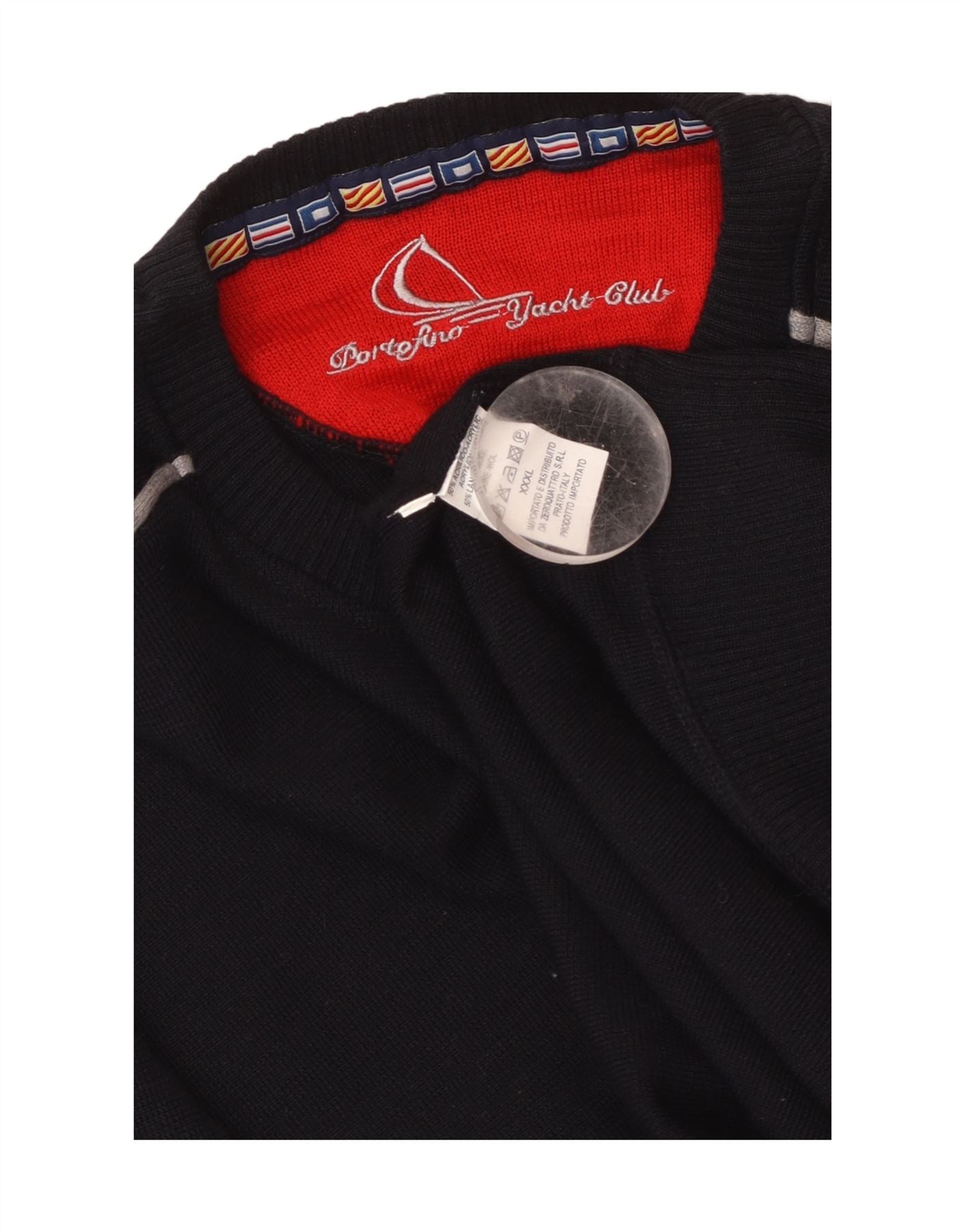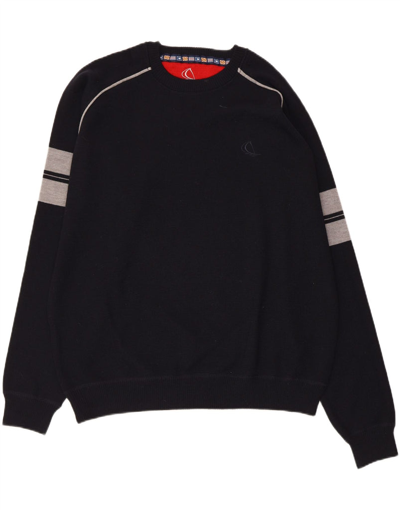 Suéter feminino VINTAGE com gola canoa UK 22 3XL azul marinho colorblock
