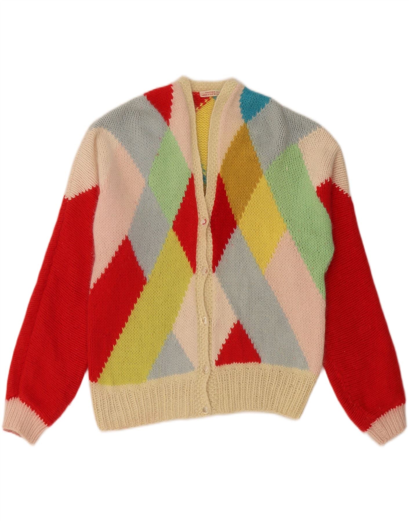 Suéter cardigã feminino VINTAGE UK 14 grande multicolorido Argyle/Diamante
