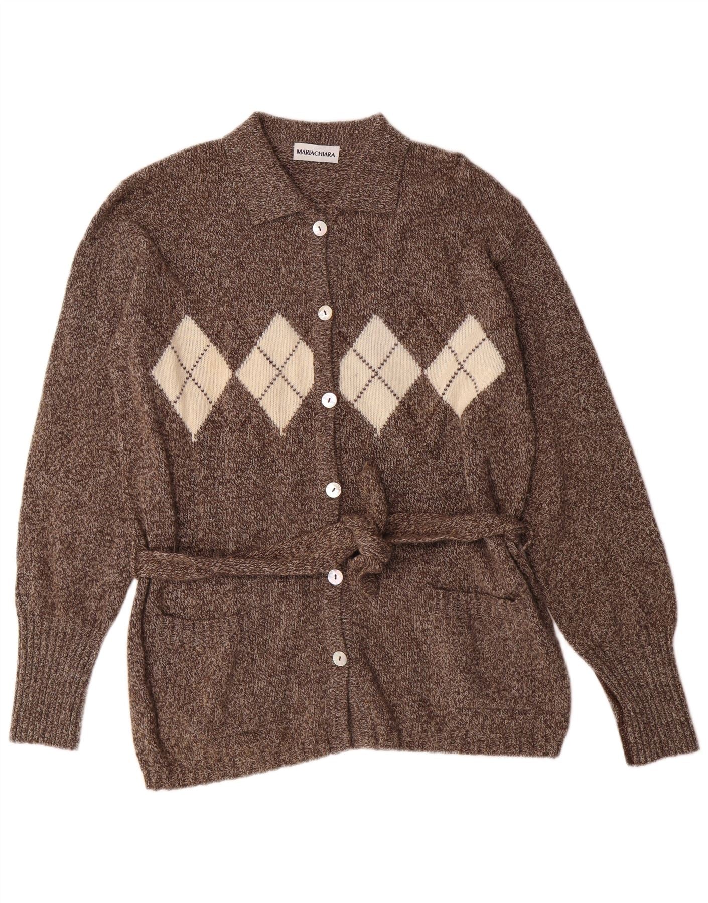 Suéter cardigã feminino VINTAGE Reino Unido 14 marrom médio Argyle/Diamante