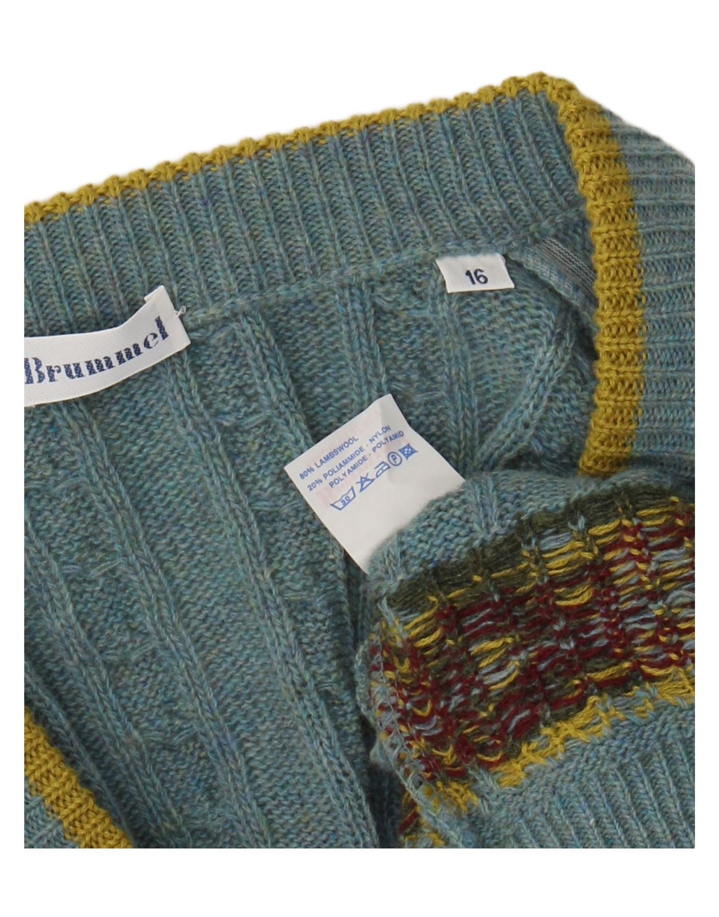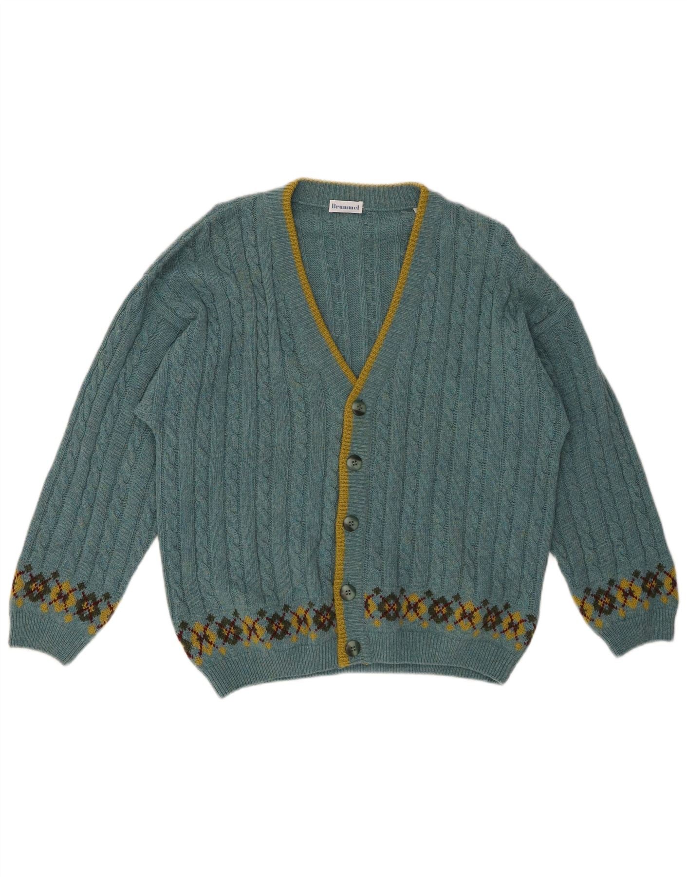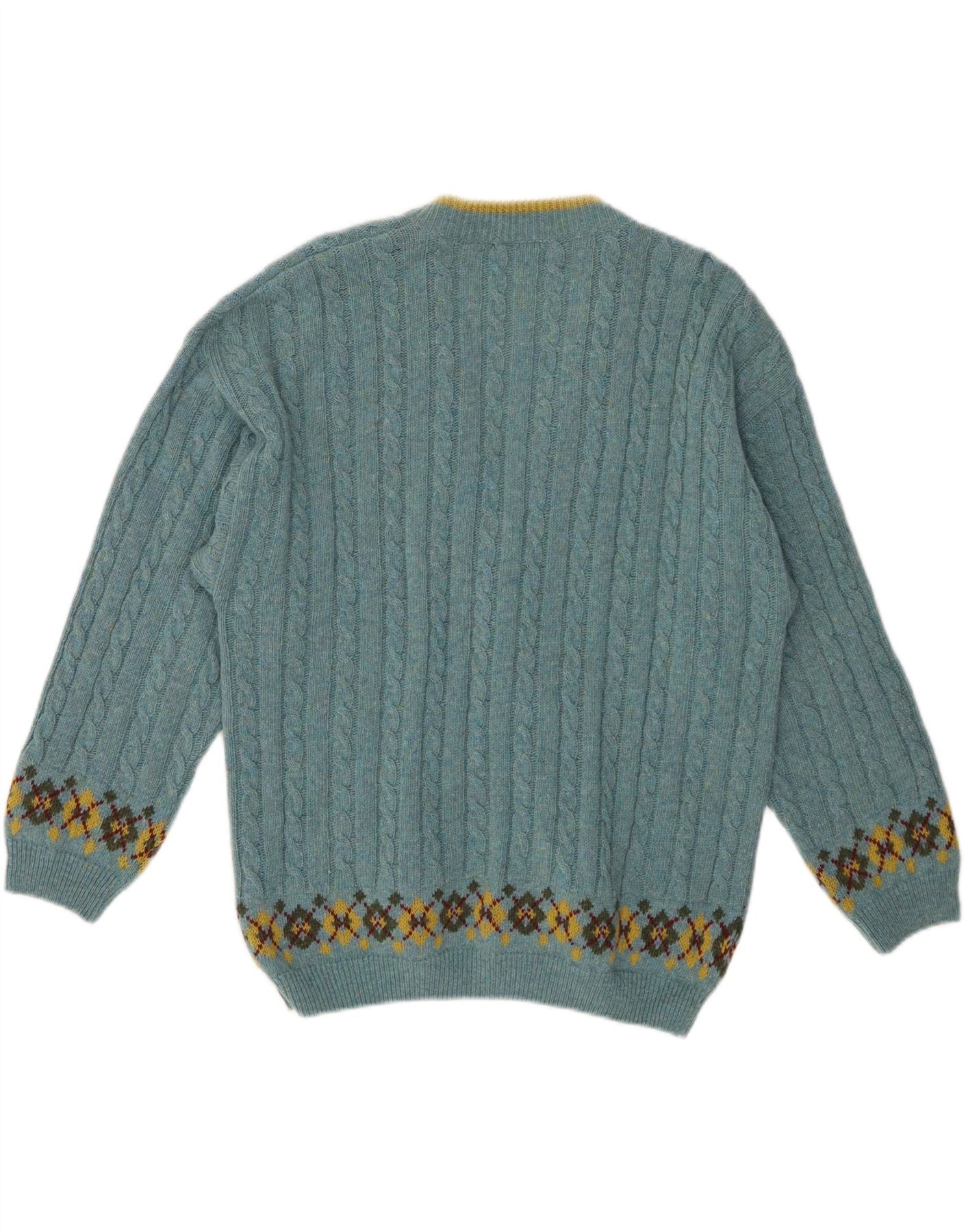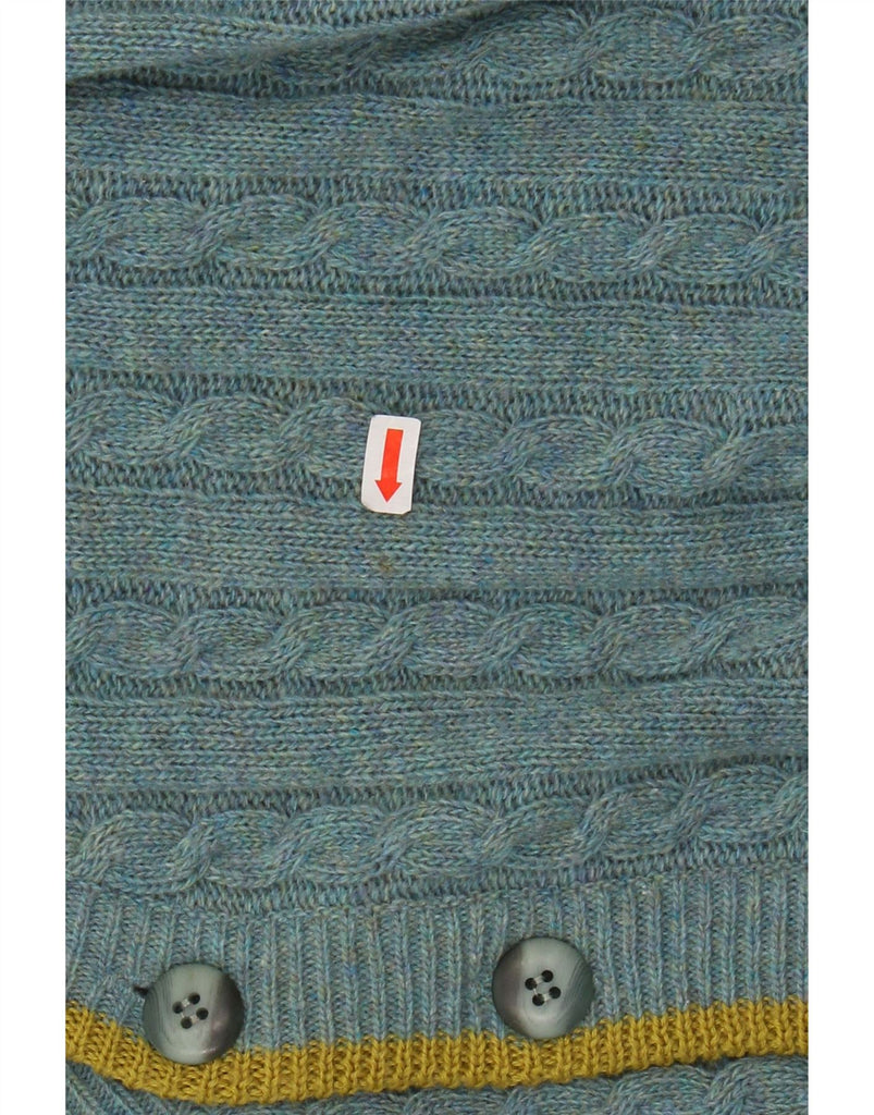 Suéter cardigã feminino VINTAGE Reino Unido 16 grande lã Fair Isle azul