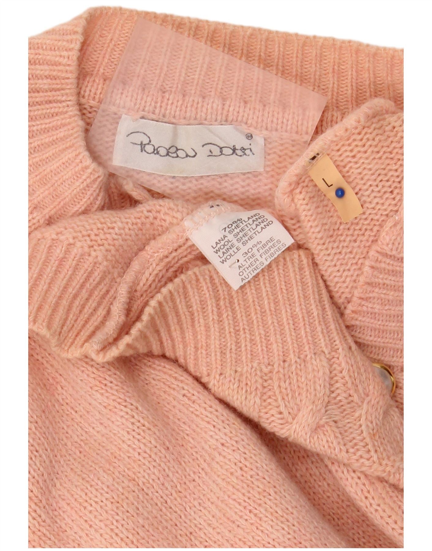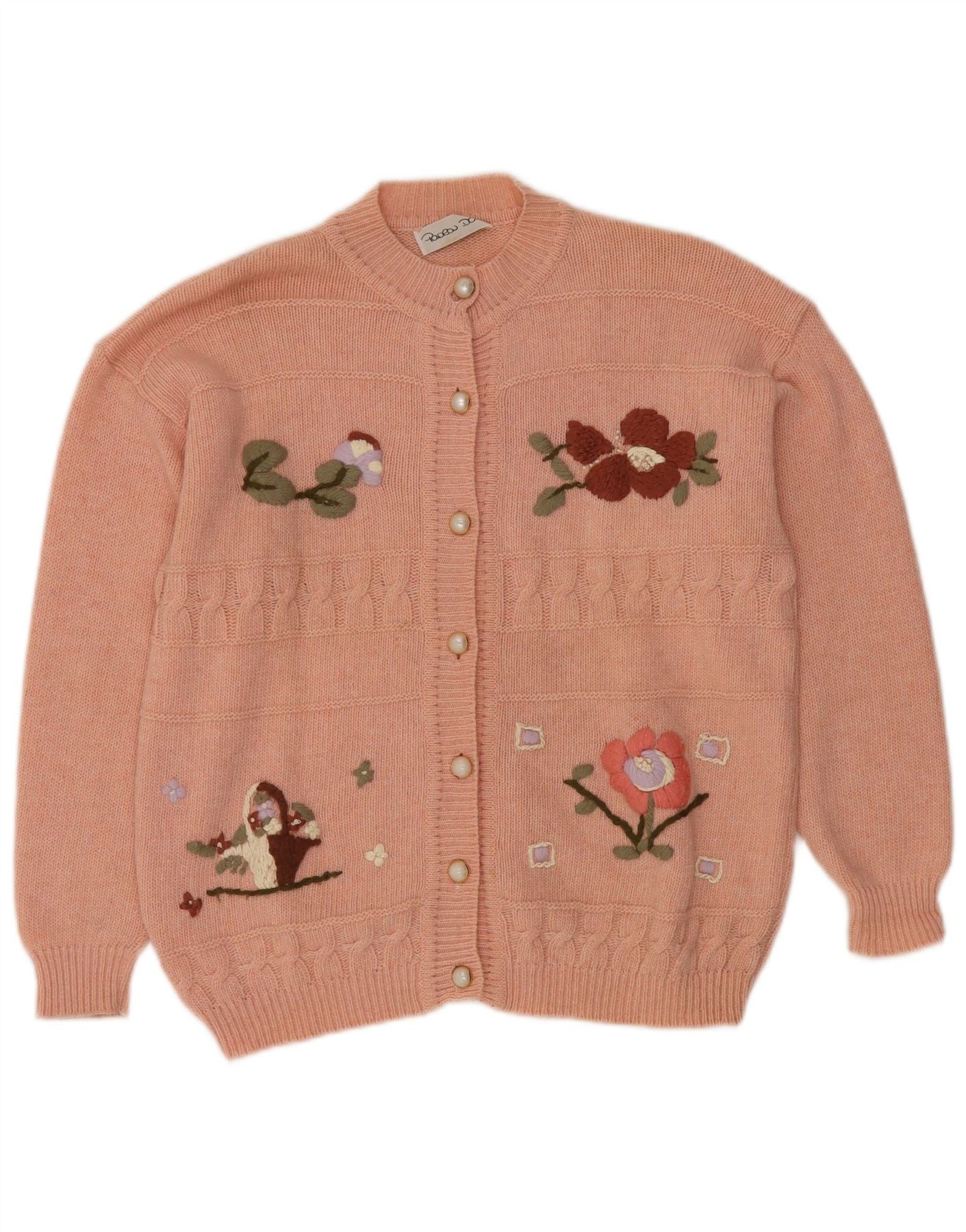 Suéter cardigã feminino VINTAGE Reino Unido 16 grande lã floral rosa