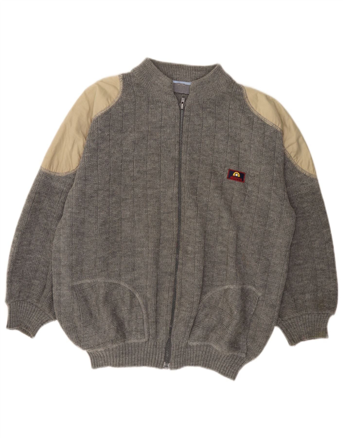 Suéter cardigã feminino VINTAGE UK 18 XL cinza colorblock