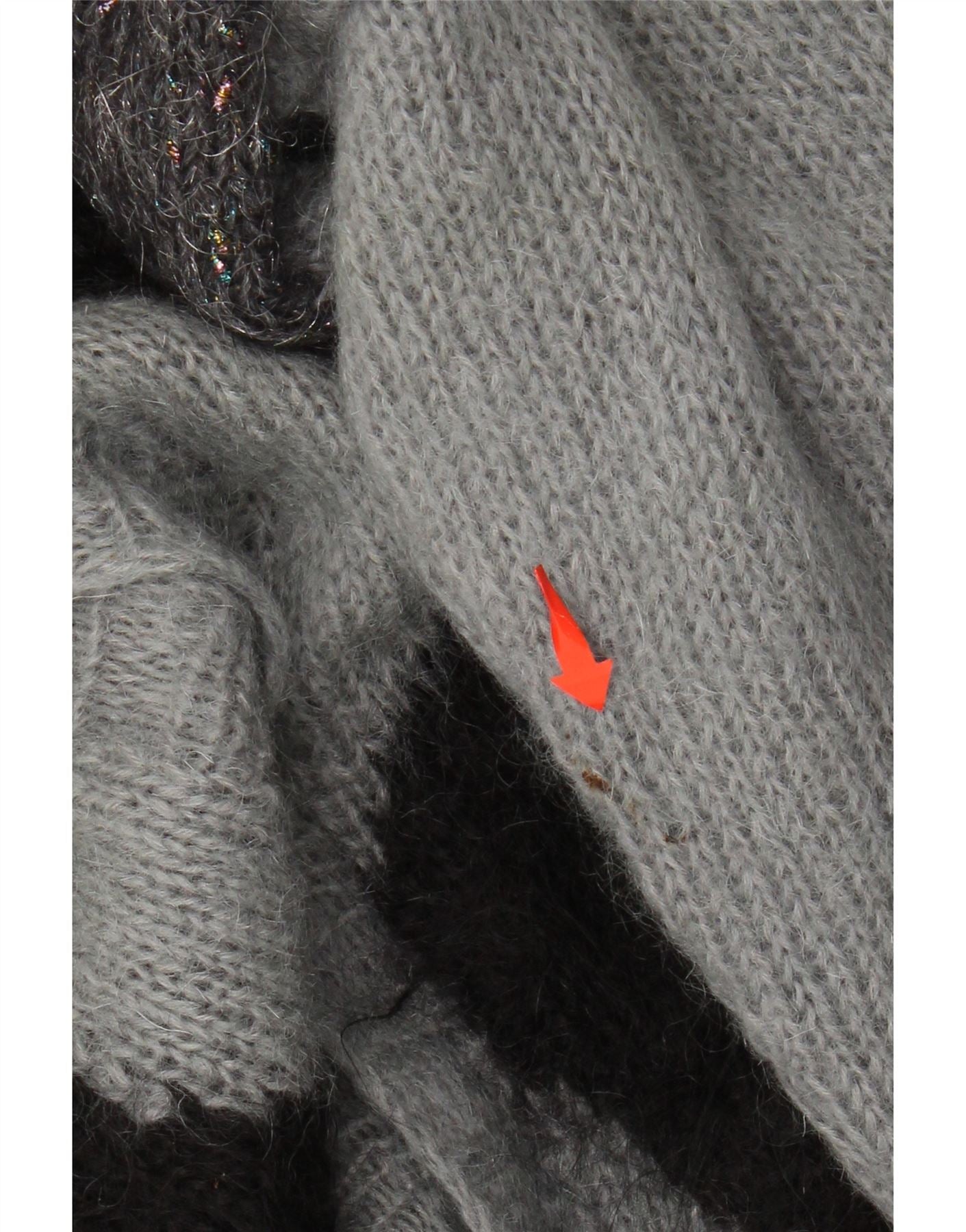Suéter cardigã feminino VINTAGE UK 20 2XL cinza colorblock