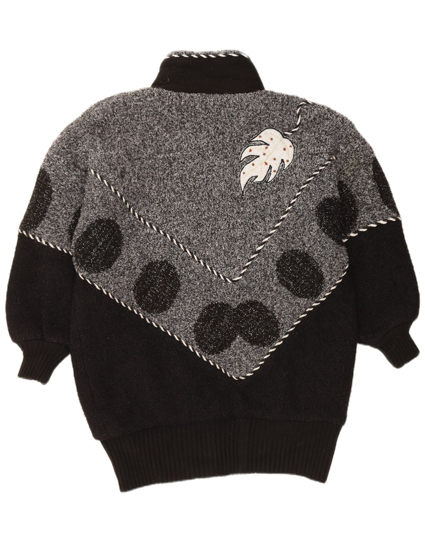 Suéter cardigã feminino VINTAGE UK 22 3XL preto colorblock