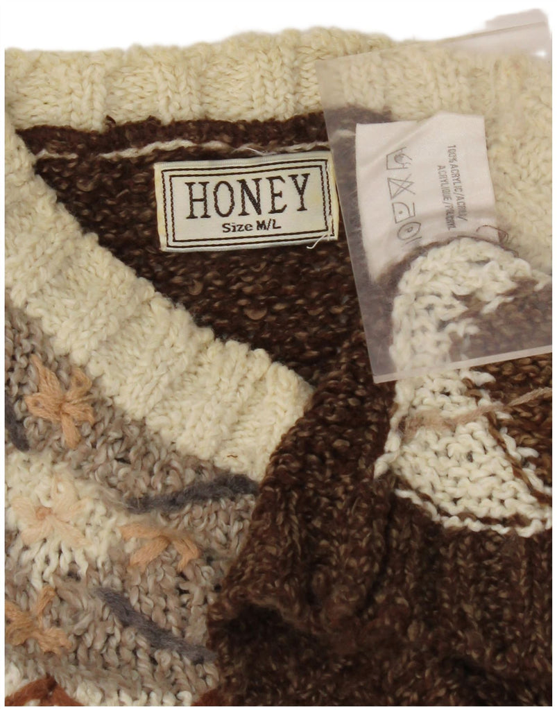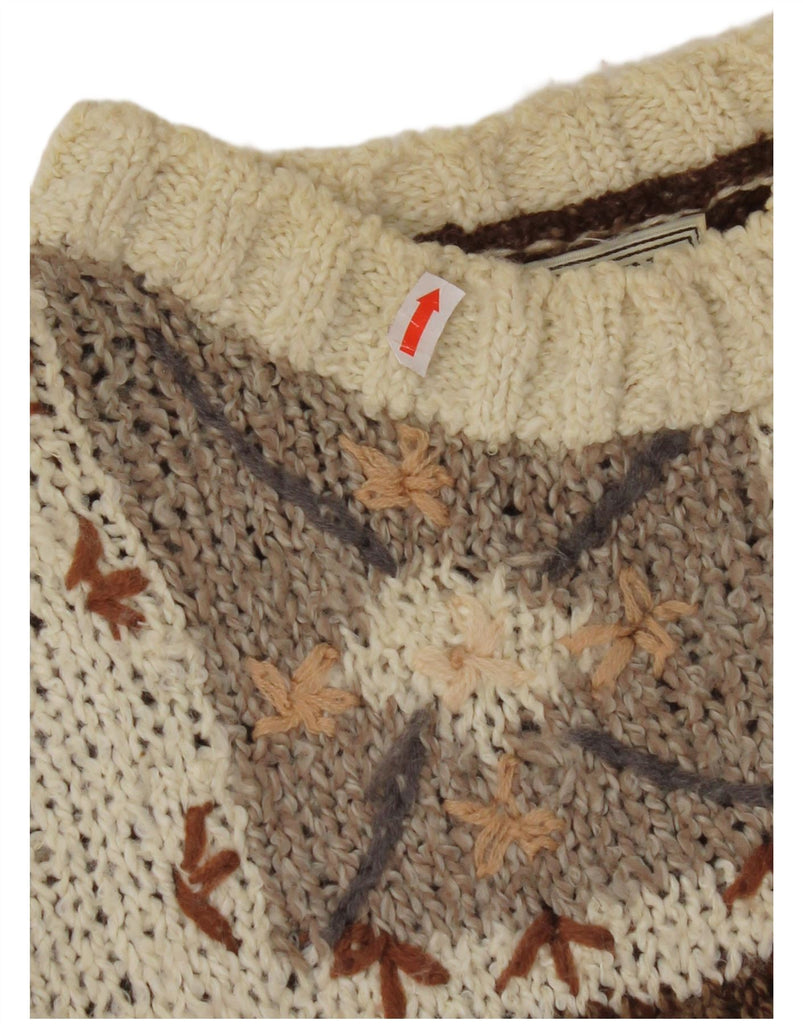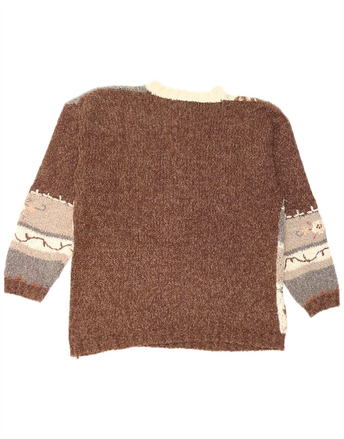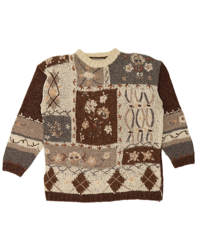 Suéter feminino VINTAGE com gola redonda Reino Unido 14 marrom médio floral